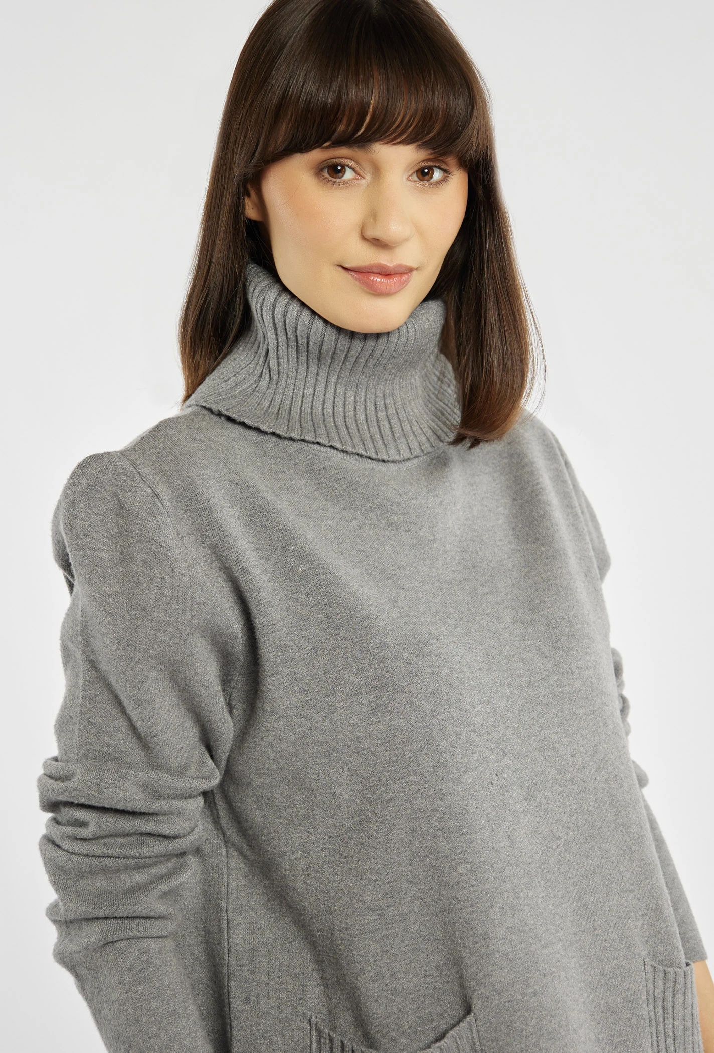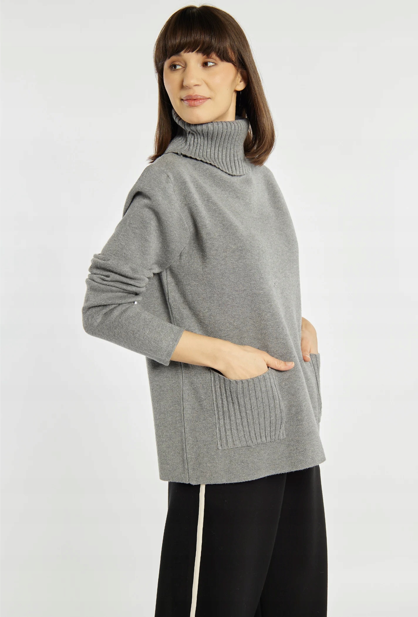 - Вільний жіночий светр із практичними кишенями, ідеальний для холодних днів. Водолазка з довгими рукавами забезпечує тепло і комфорт, створюючи чудову основу для зимового стилю. Модель на фото має зріст 177 см і носить розмір S/M.