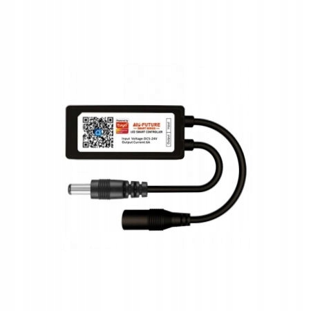 Для підключення до диммера підключіть до нього блок живлення та світлодіодну стрічку. У набір входить інструкція, яка покроково описує налаштування пристрою. Також є QR-код для додатка на диммері. Пристрій працює під напругою від 5 до 24 вольт і максимальною силою струму 6 ампер (144 Вт).