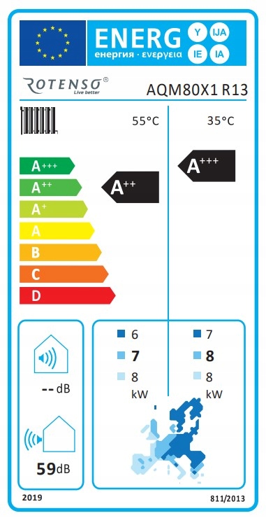 Це дуже ефективний агрегат із високим класом енергоефективності. A+++ (для температури подачі 35°) і A++ (для температури подачі 55°).