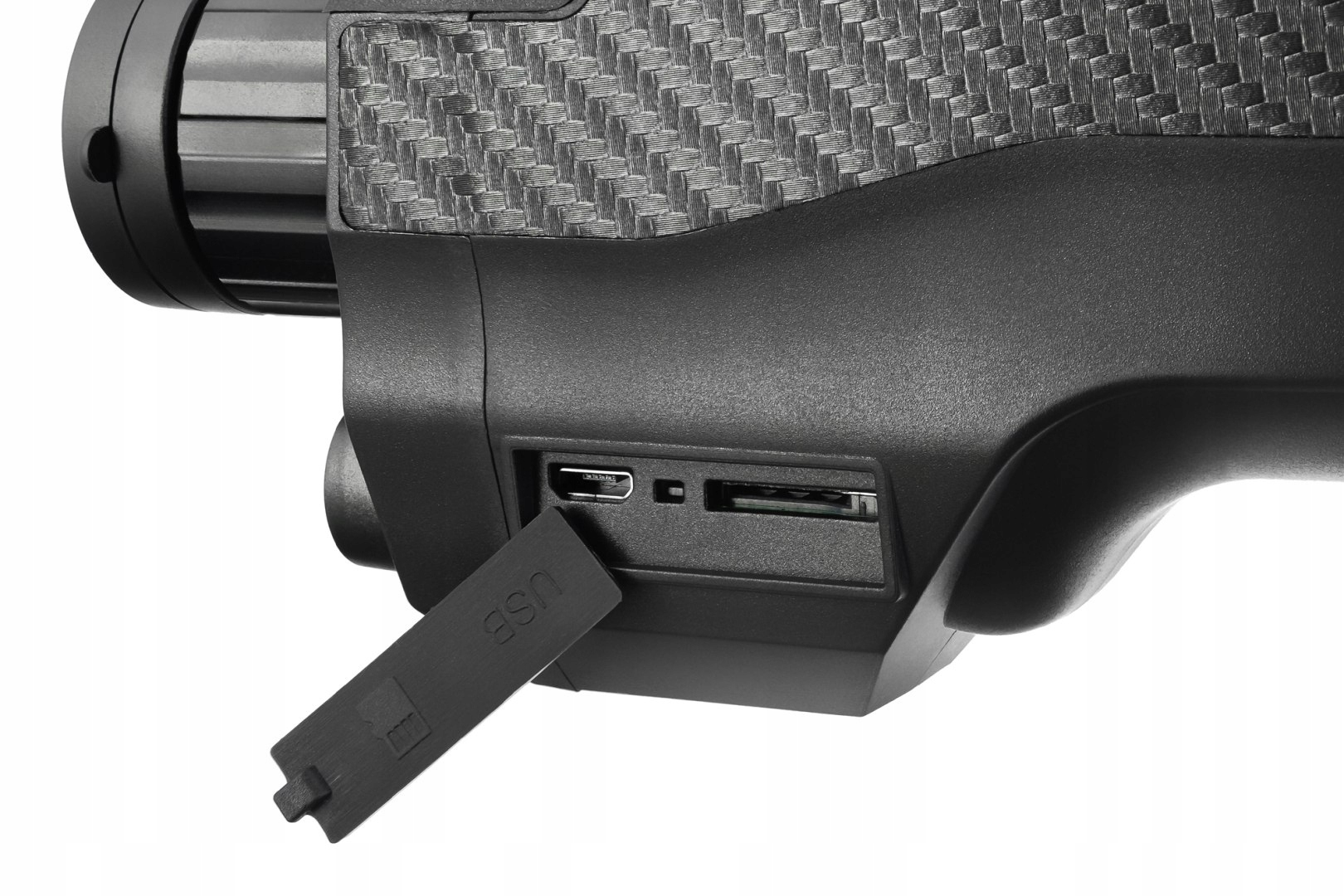 Вдень відстань спостереження монокуляра Levenhuk Atom Digital DNM100 необмежена, вночі ви можете спостерігати за околицями в радіусі 200 метрів. Можливість встановлення на штативі 1/4" полегшує стаціонарні спостереження та фотографування. Вбудований реєстратор дозволяє зберігати матеріали у форматі фото та відео на карту пам'яті великої ємності (до 128 Гб). USB-порт розташований поруч із слотом для карти пам'яті. Максимальна роздільна здатність фотографій становить 4096x2160 пікселів, а відео записується у форматі Full HD.