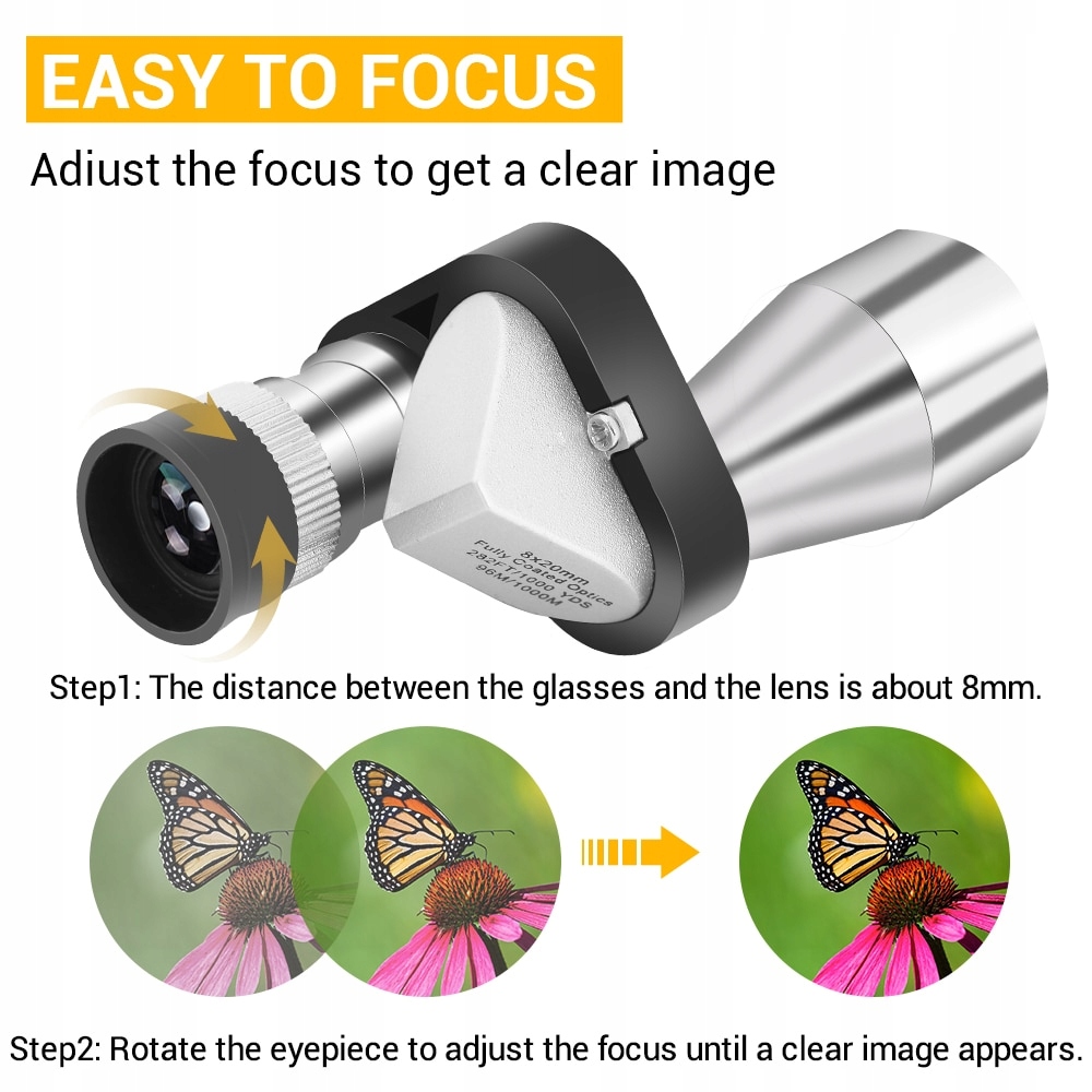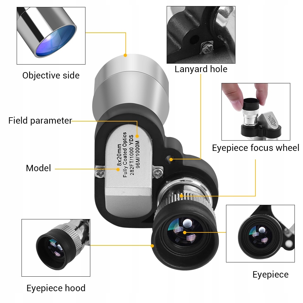 2. Цей кишеньковий монокуляр 8x20 з катадіоптричною конструкцією є потужним інструментом для альпінізму, походів. Це найкращий телескоп із великим збільшенням для дорослих і дітей.