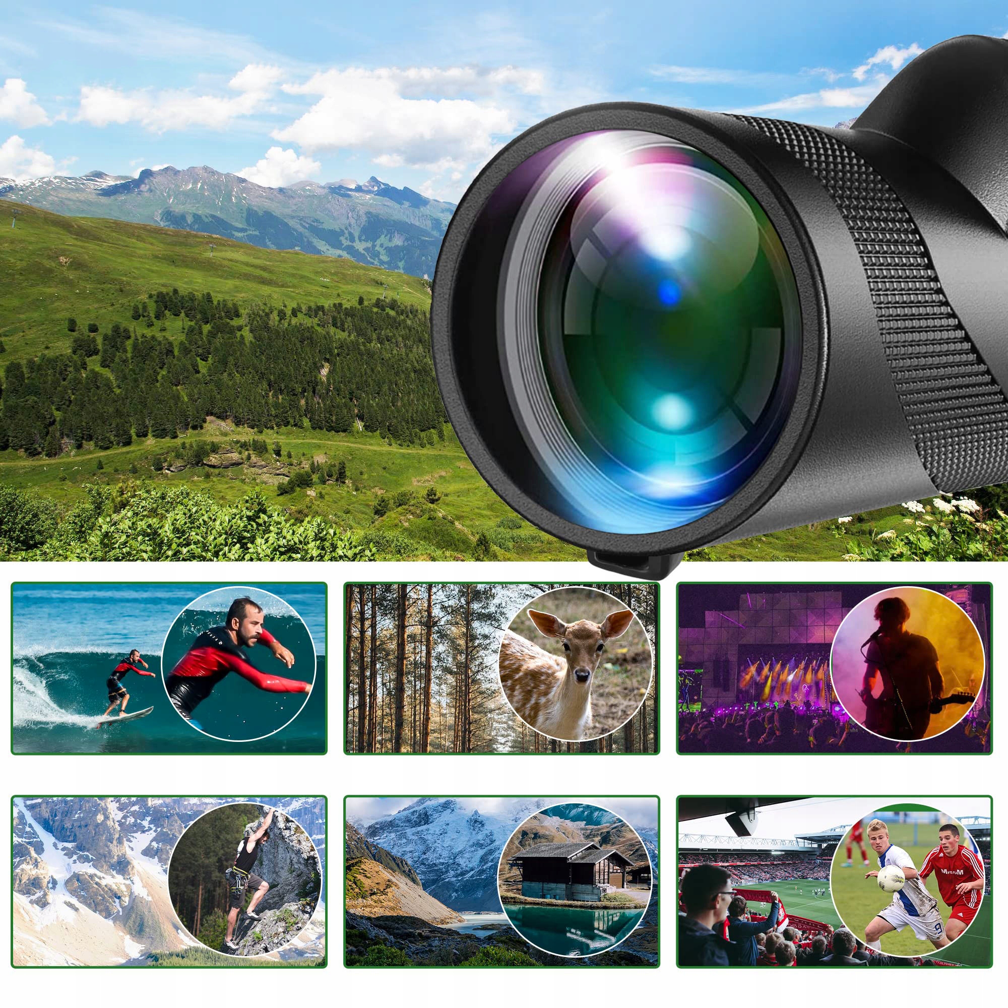 Телескоп забезпечує 80-кратне збільшення та об’єктив 100 мм, що дає вам змогу отримати найкращий огляд під час ваших пригод на природі. Цей монокуляр оснащено кільцевими ущільнювачами, які захищають від вологи та зберігають чітке зображення в будь-який час. Монокуляр характеризується компактним, міцним, якісним, точним дизайном.