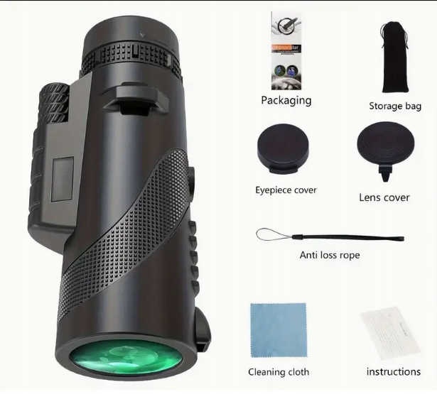 Сучасний та високофункціональний монокулярний з збільшенням 10x - незамінний супутник під час пригод на відкритому повітрі, таких як : Кемпінг, блукання, спостереження за птахами чи дикою природою. Оснащений високоякісною призмою HD та багатошаровим покриттям FMC (повністю багатоквартирним), гарантує чітке, чітке та детальне зображення навіть у важких умовах освітлення. /b>