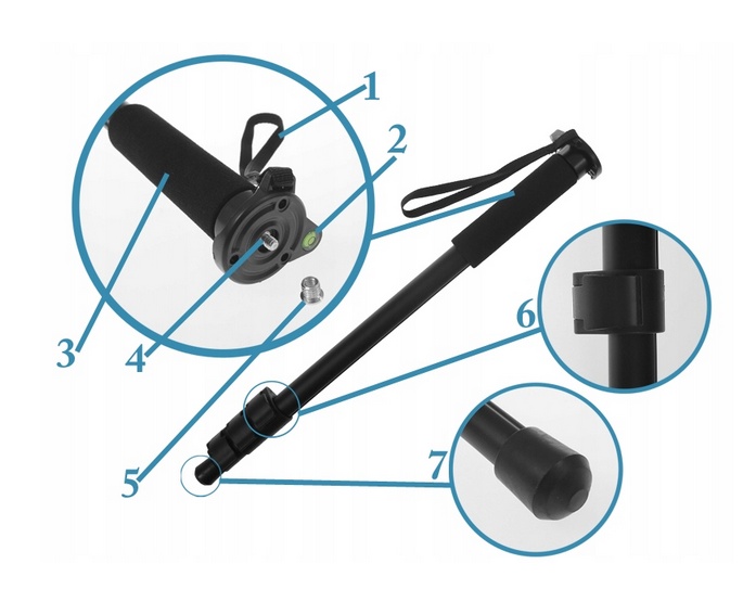 Ніжки розділені на чотири. розділи - завдяки цьому монопод у складеному стані має довжину 50 см (це також його мінімальна робоча висота - ідеально підходить для зйомки макрознімків без розмиття поблизу землі, наприклад, комах, травинок, квітів, лісовий підлісок...)