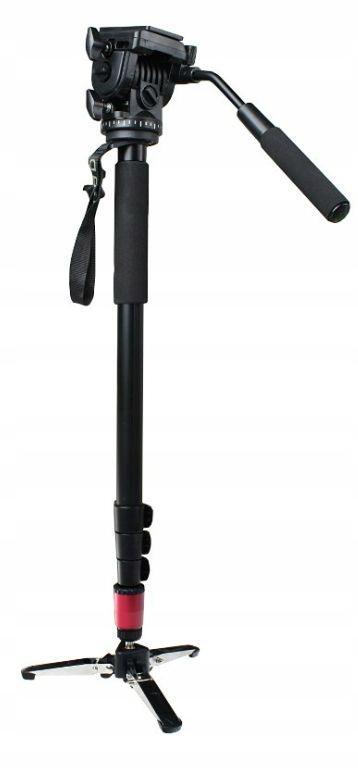 Матеріал, з якого він виготовлений, - високоякісний алюміній з невеликою вагою і при той же час, висока міцність і стабільність. Телескопічно складна ніжка дозволяє легко і швидко регулювати висоту монопода. Головка монопода панорамно обертається на 360 градусів.