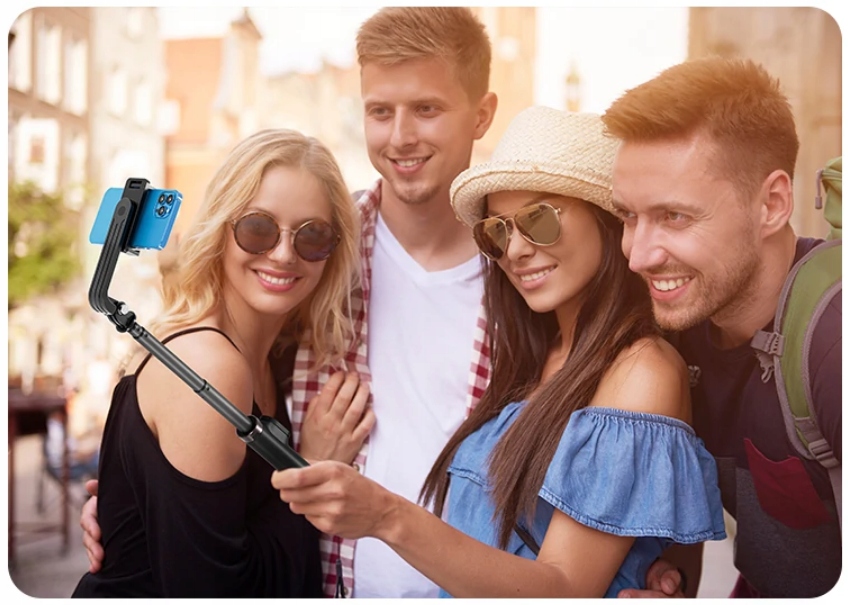 Виріб дуже зручний завдяки міні-штативу, інтегрованому в монопод. Незамінний, коли ви хочете зробити групові фотографії, здалеку або автопортрети.