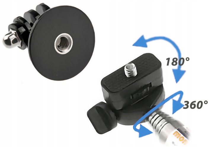 Він закінчується міні-головкою з монтажною різьбою 1/4 дюйма, що дозволяє розмістити камеру будь-яким способом.