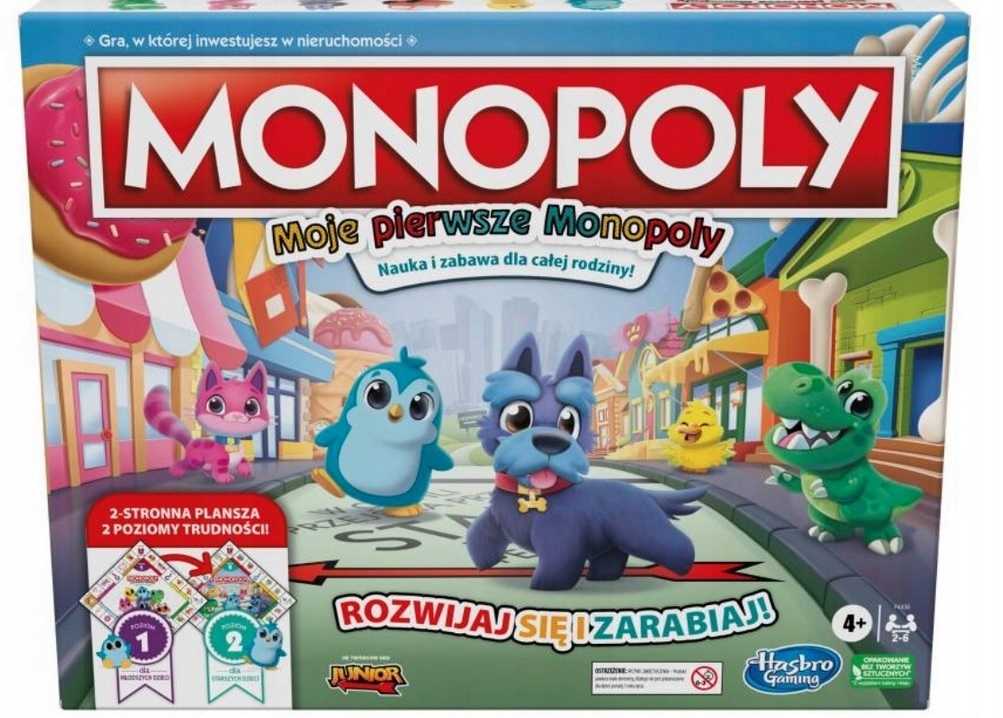 Моя перша настільна гра Monopoly - це чудовий спосіб вчитися для всієї родини. Він містить двосторонню ігрову дошку з двома рівнями гри, тому ви можете вирішити, який рівень підходить для всіх гравців!