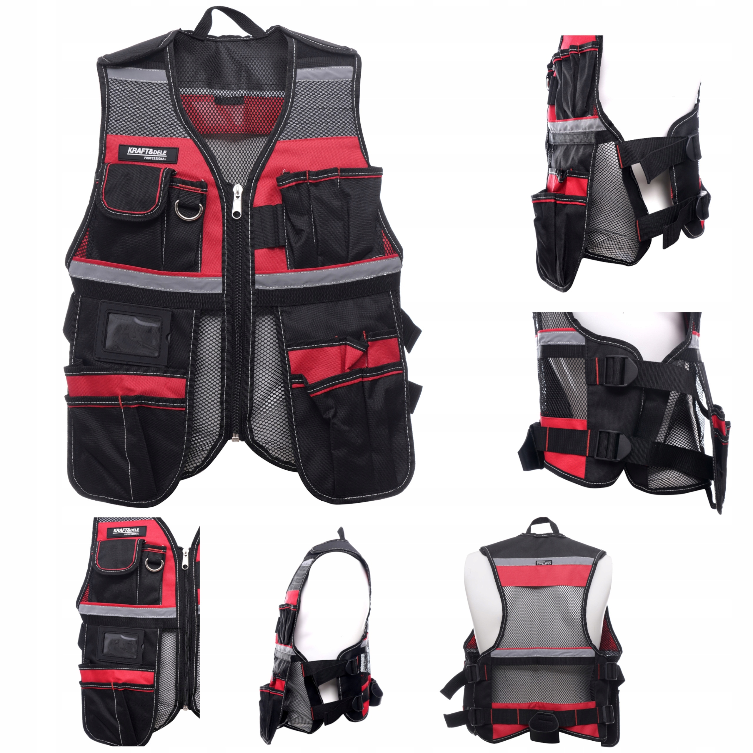 4 Завдяки нашому жилету ви завжди будете мати їх з собою, при цьому вільні руки незалежно від місця, де ви працюєте: на даху, на лісах чи на машині. Жилет виготовлений з дихаючого матеріалу, гарантуючи тепловий комфорт та полегшення дихання шкіри, а регульовані смуги дозволяють відповідати силуету користувача. Завдяки відбиваючим ременям, видимим здалеку, ви зможете безпечно працювати навіть вночі.