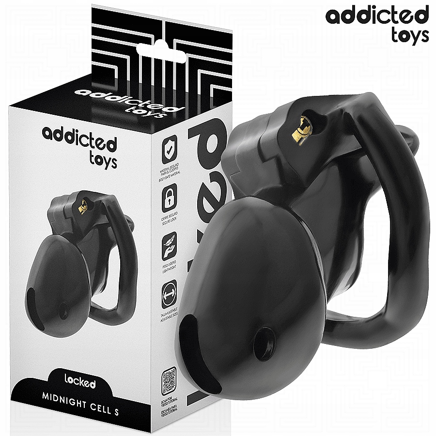 Addicted Toys Locked Midnight Cell Penis Cage S — це складна клітка для пеніса, виготовлена з міцного та безпечного матеріалу. Кожна деталь підкреслює еротичну атмосферу і витонченість цього виробу. У набір входить клітка для пеніса та чотири кільця різного розміру (48 мм, 49 мм, 52 мм, 54 мм), які забезпечують ідеальну посадку та максимальний комфорт. Інтегрований замок з парою ключів гарантує повний контроль і безпеку під час використання. Усі компоненти розроблені з урахуванням безпеки та простоти у використанні, тож це може сподобатися як новачкам, так і досвідченим користувачам. Компактні розміри дозволяють непомітно носити під одягом і полегшують довгострокові обмеження.
