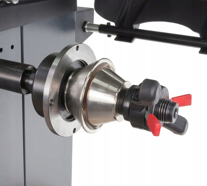 - Приводи, що переміщують затискачі, забезпечують точне центрування та кріплення тримач колеса. Розташування педалей забезпечує комфорт для обслуговуючого персоналу.