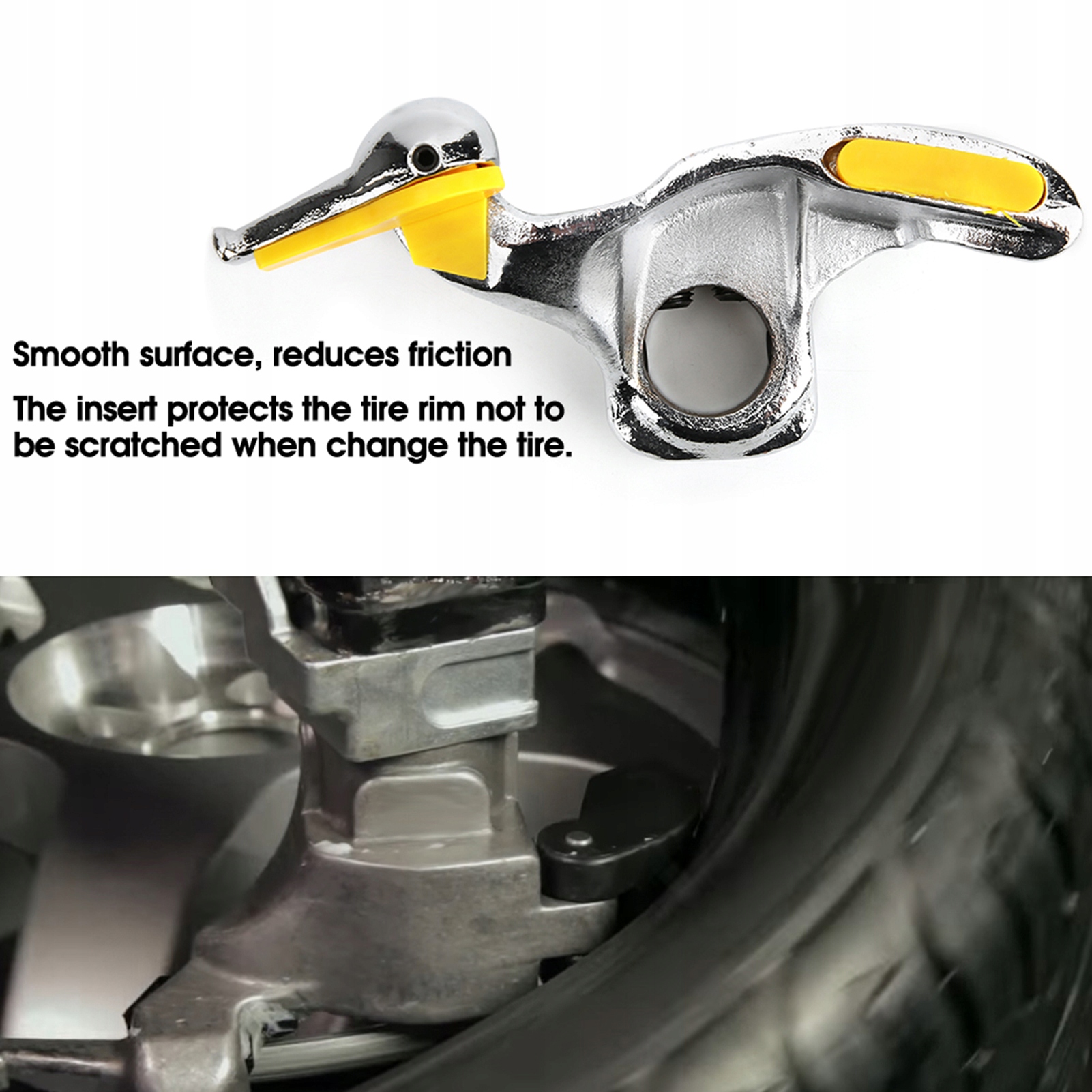 Автомобільний шиномонтажний пристрій з нержавіючої сталі. Зняття аксесуарів з качиною головою із захисними накладками.
