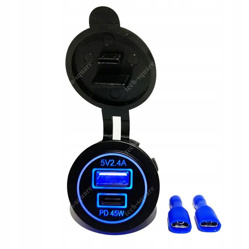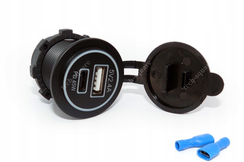 Монтажна розетка USB QC 3.0 + USB C PD 45W 12-24V