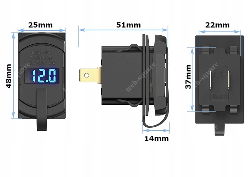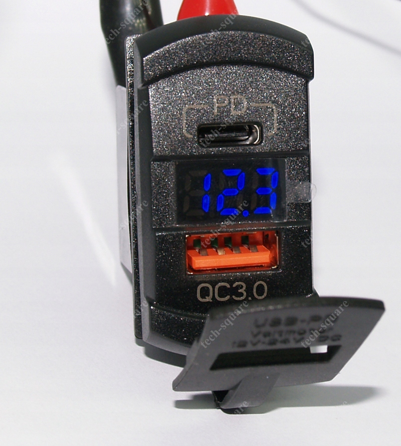 Монтажна розетка USB QC3.0 18W + PD 36W 12-24V Voltmeter