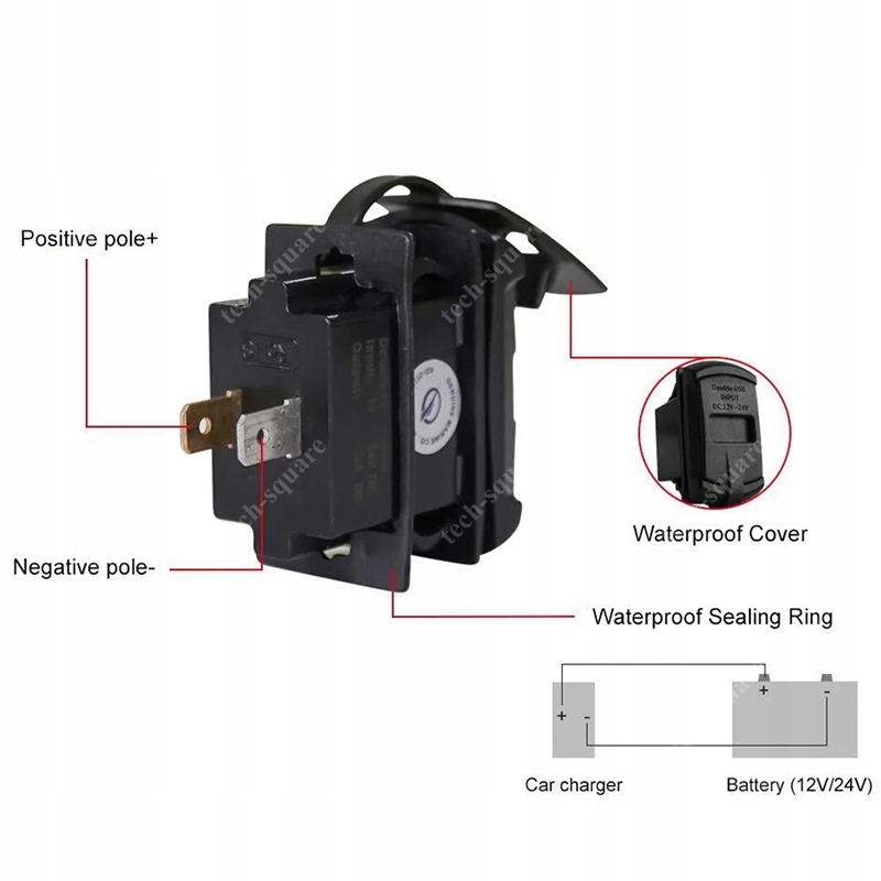 - Розетка підходить як для джерела живлення 12 В, так і для 24 В.