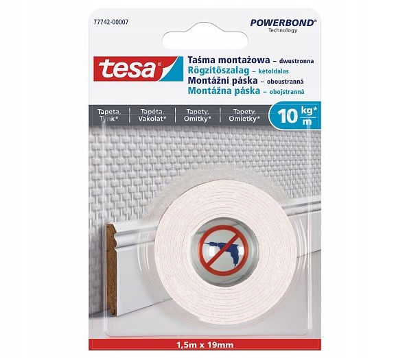 Практична двостороння монтажна стрічка для шпалер і штукатурки tesa® меншого розміру рулон для постійного наклеювання плоских декоративних і побутових елементів, це інноваційне рішення, розроблене для делікатних суцільних і шорстких стін.