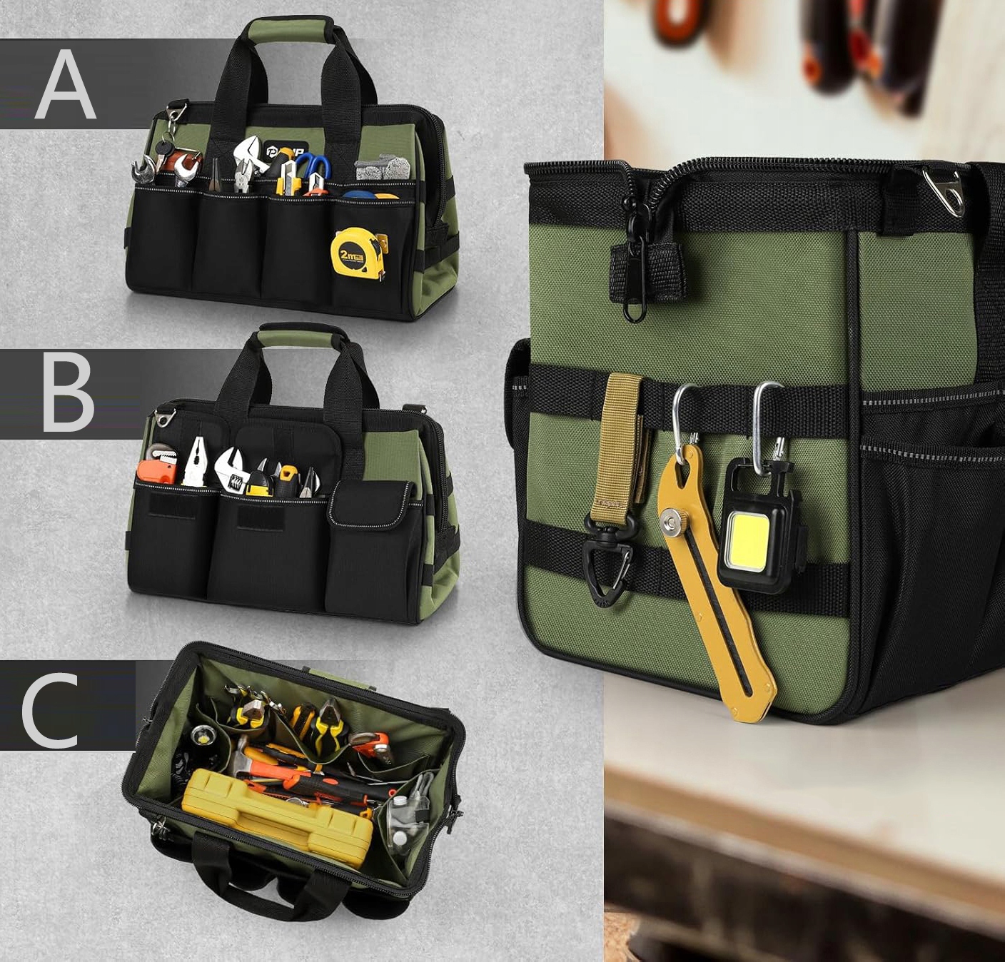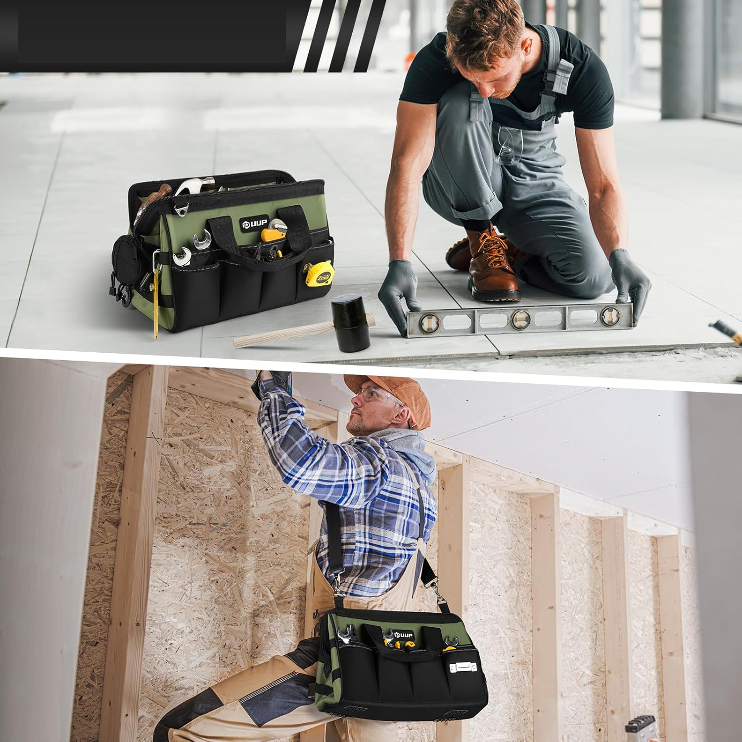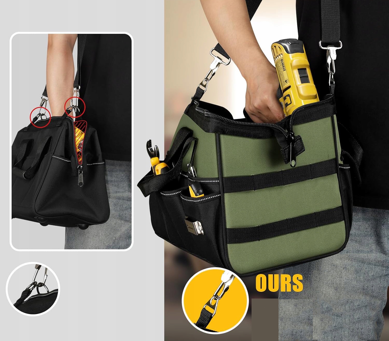 Унікальний плечовий ремінь: сумка для інструментів має регульований плечовий ремінь 114 см, який підходить для чоловіків різного зросту. Металева пряжка дозволяє легко відкривати і закривати сумку під час її носіння. Зручна ручка забезпечує додаткові можливості для перенесення.