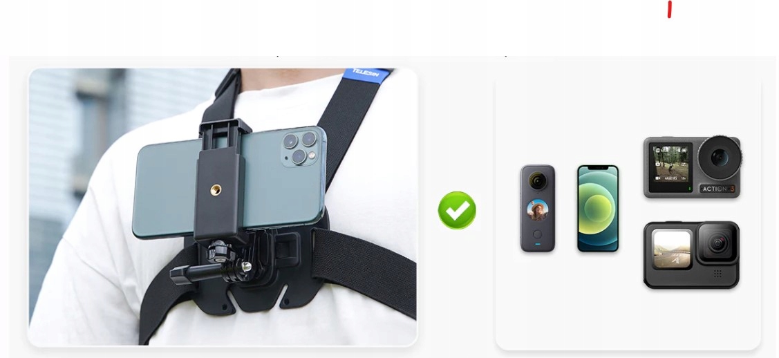 - 1x еластичні регульовані плечові ремені, що дозволяють кріпити камери на грудях
