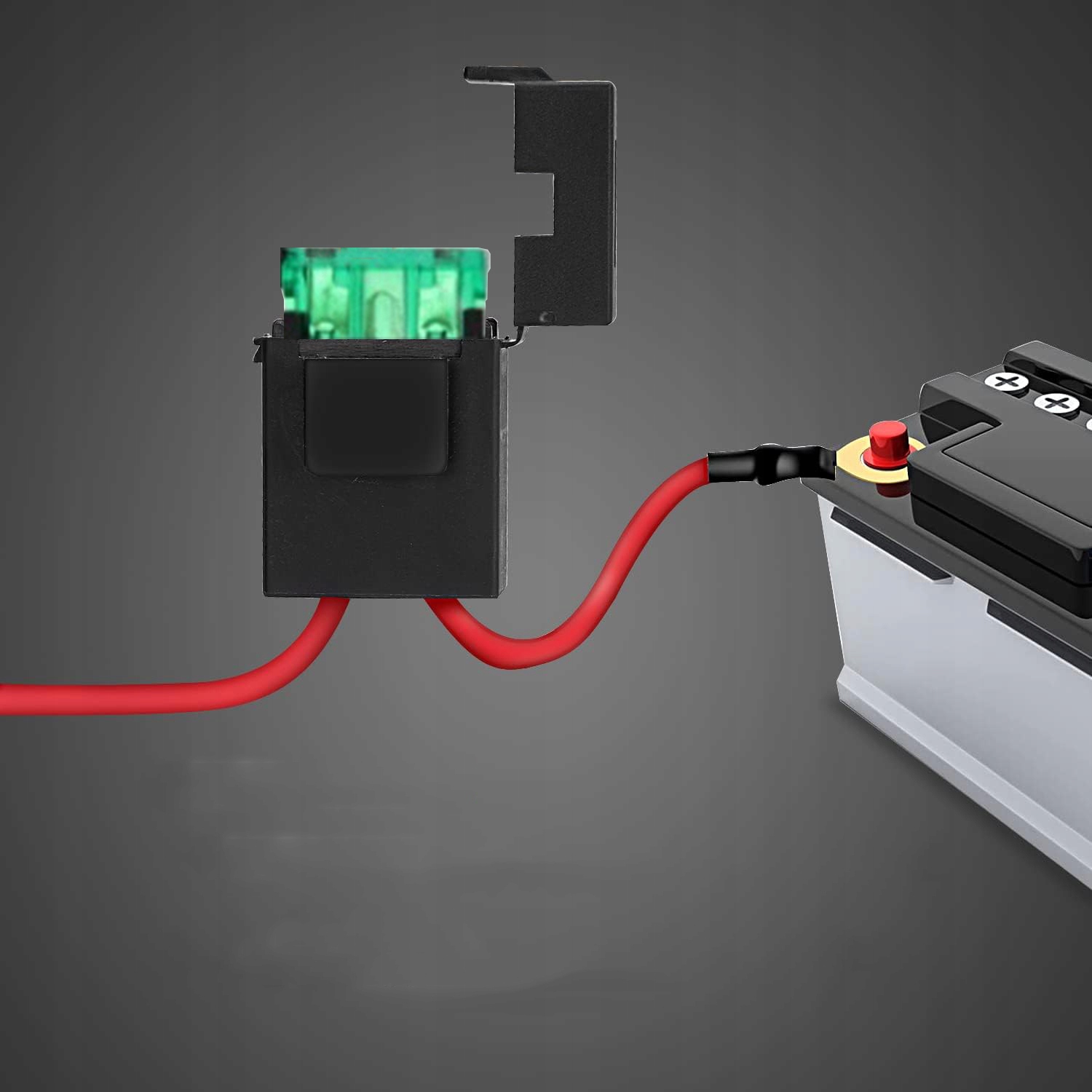 ✅Довжина дроту джгута для світлодіодних ліхтарів: 4,9 метра. Напруга: 12-24 В. Плоский тримач запобіжника 12-24 В із запобіжником 40 A. Відстань керування понад 90 см.