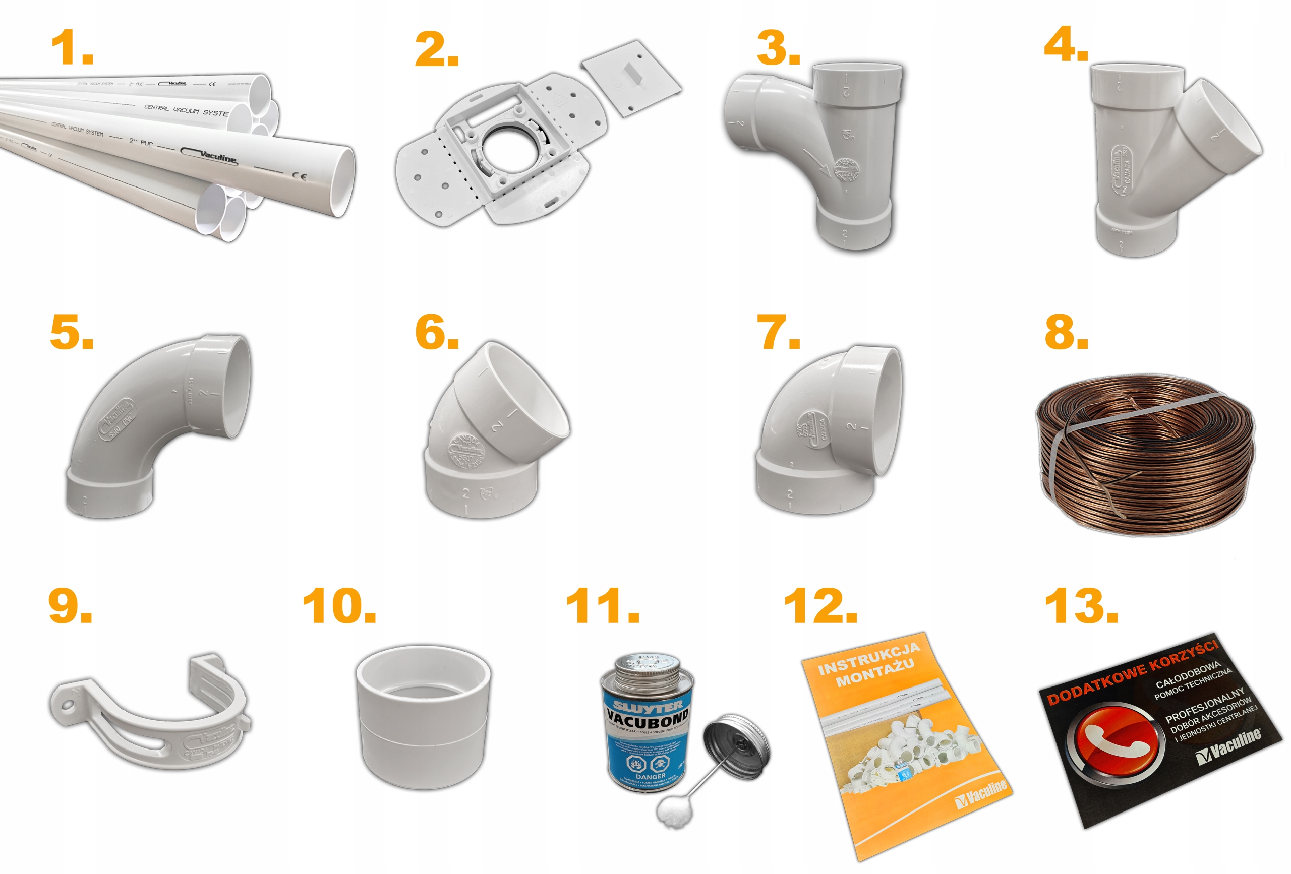 Цей монтажний комплект для самостійної установки центрального пилососа підібраний оптимально як за кількістю компонентів, так і за їх якістю