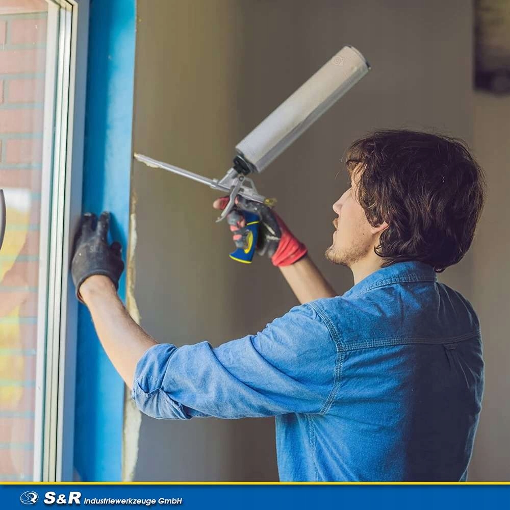 Пістолет монтажної піни S&R з регулюванням струменя, пістолет промислової якості для банок з будівельною піною, ергономічна ручка, тримач для банок з тефлоновим покриттям, точне скидання піни