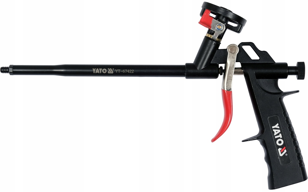 пінопласт, що подається на будівництво, збірку та ізоляційні роботи . Тіло пістолета та кошик, виготовлений з з алюмінієвим литтям . Ціле покрите ptfe . Під кошиком є клапан, що регулює кількість піни, що витікає з циліндра.