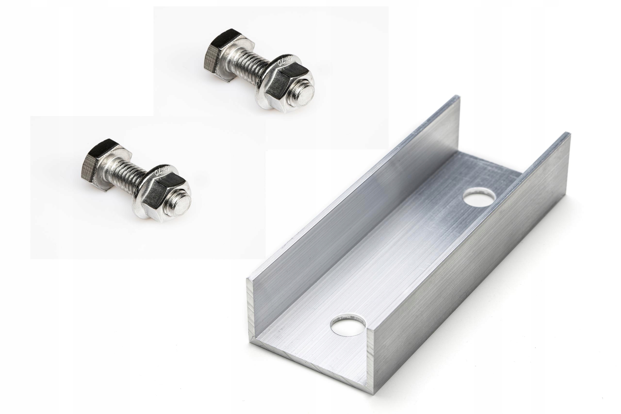 - верхній канал рейки, адаптований до квадратних гайок M8 у поєднанні з шестигранними гвинтами. Використовується для монтажних затискачів, що кріплять сонячні панелі,