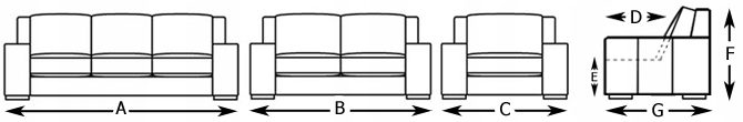 - A - ширина 3-місного дивана: 205 см