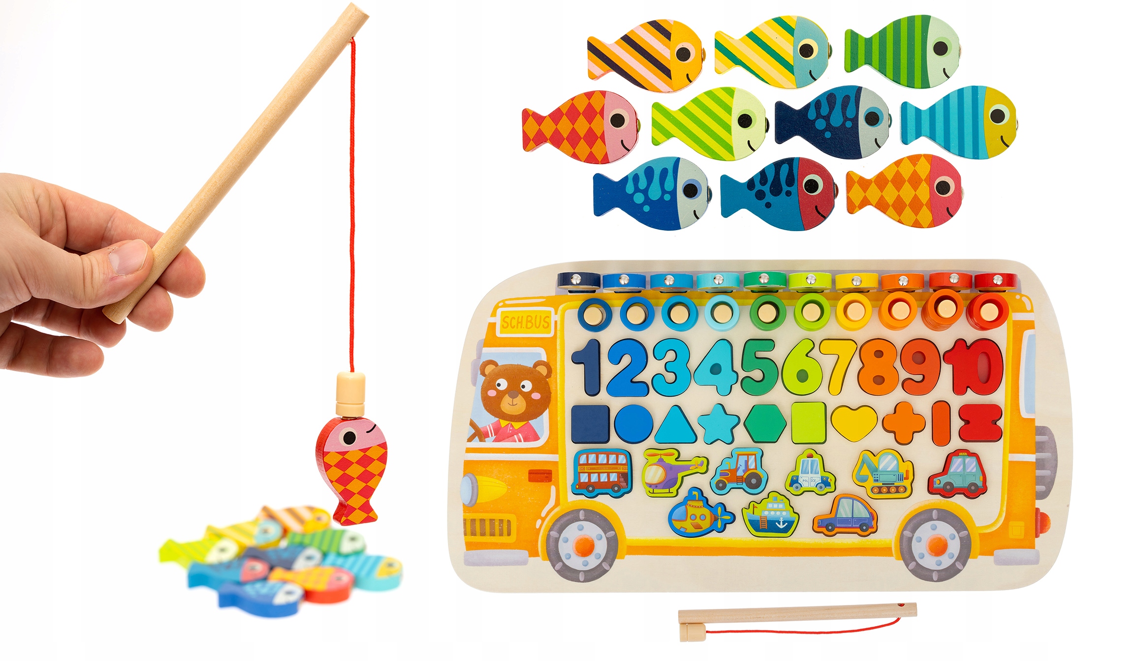 Дерев'яна головоломка з цифрами «Автобус», гра «Рибка» чудово підійде як для самостійної гри, так і для спільної гри з батьками.