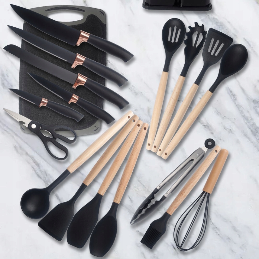 Монтесса силіконовий кухонний посуд Набір аксесуарів Чорні ножі 19 шт