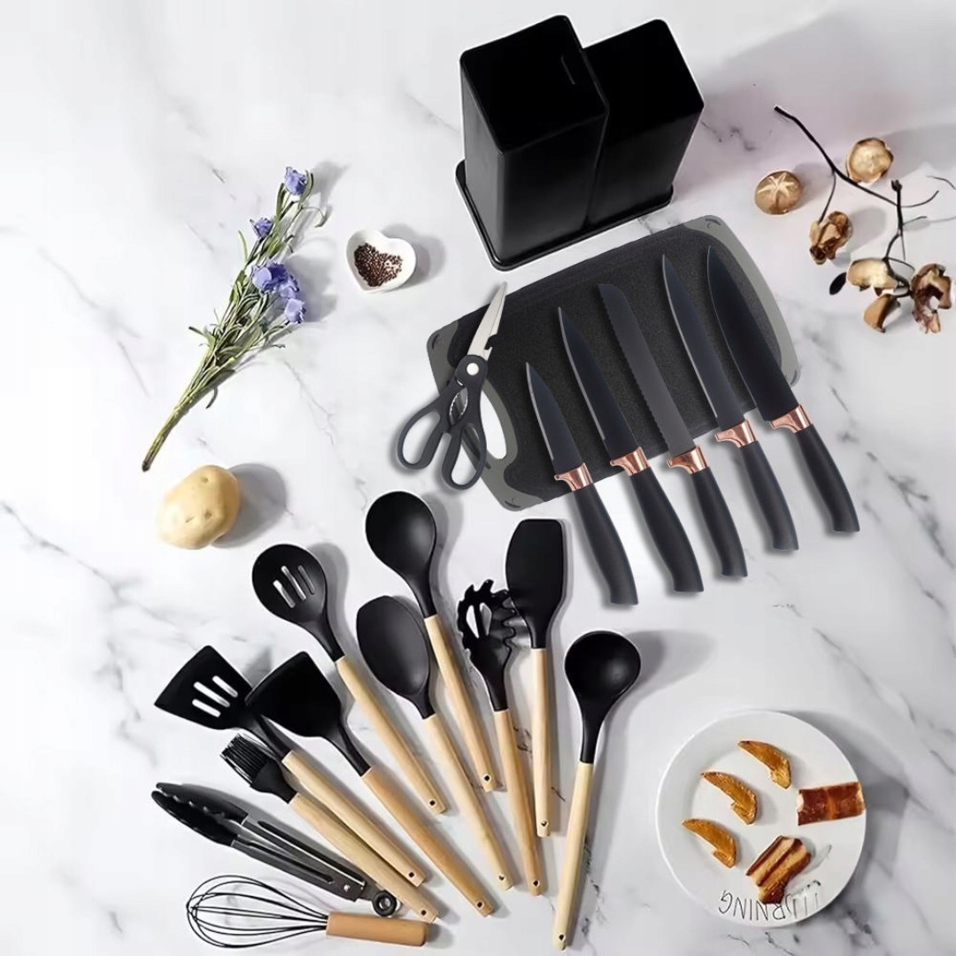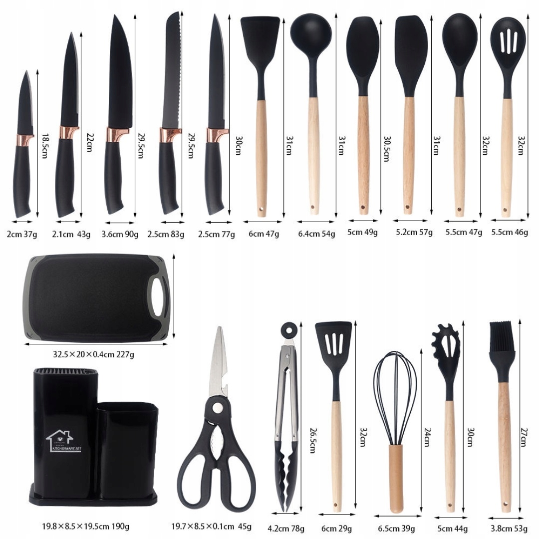 ✨ Силіконова кухня Montess набір набору аксесуарів Чорні ножі 19 ПК