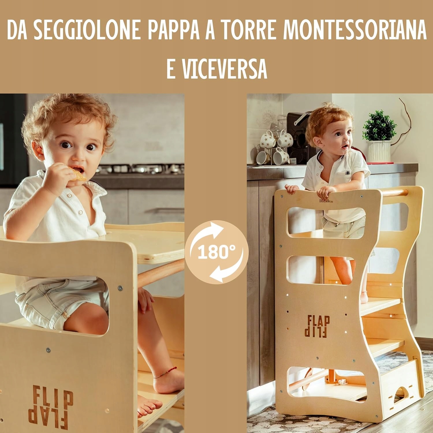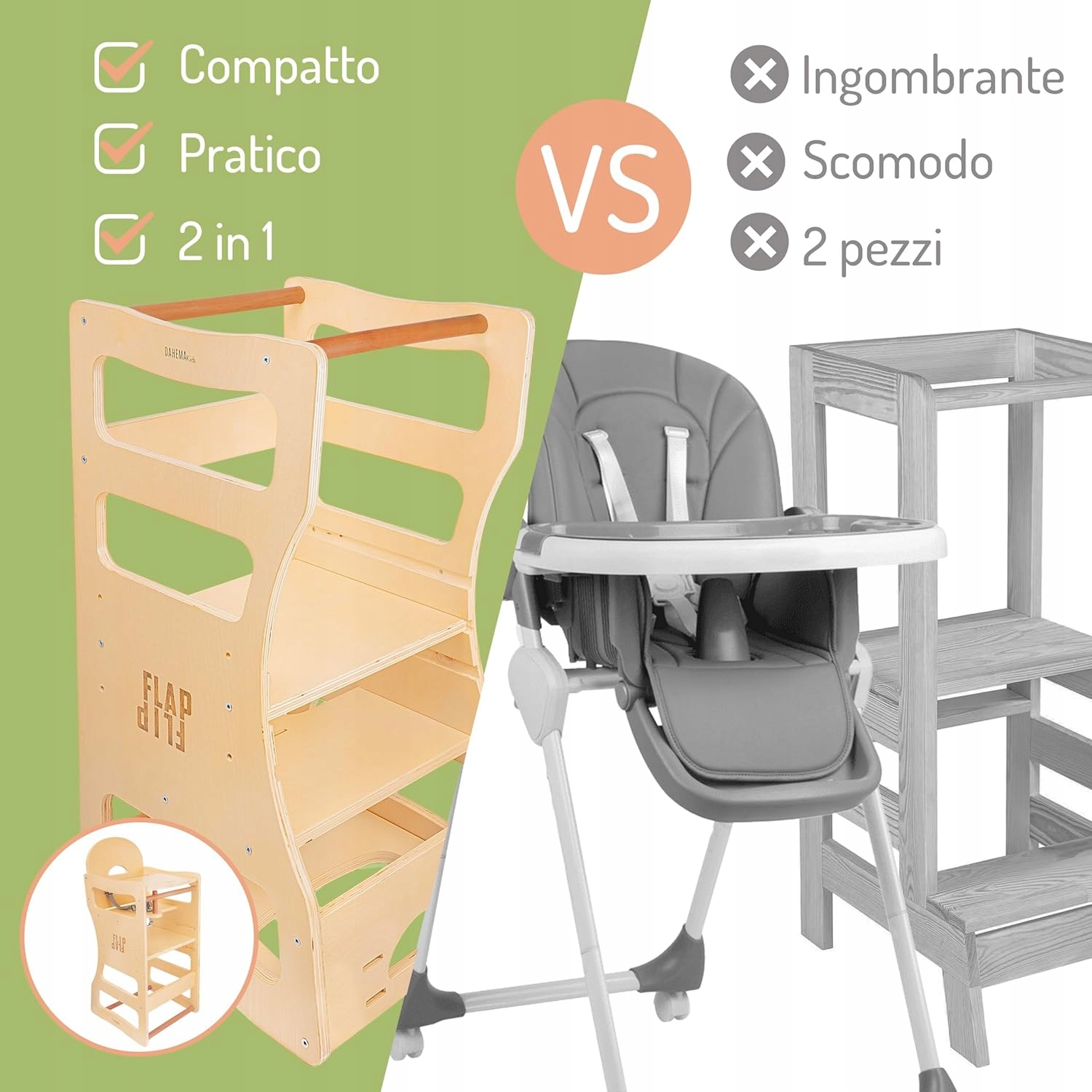Вежа Монтессорія для дітей, яка може бути перетворена на крісло для немовлят 0-36 місяців - еволюційна освітня вежа, виготовлена з дерева - багатофункціональна драбина навчальної вежі