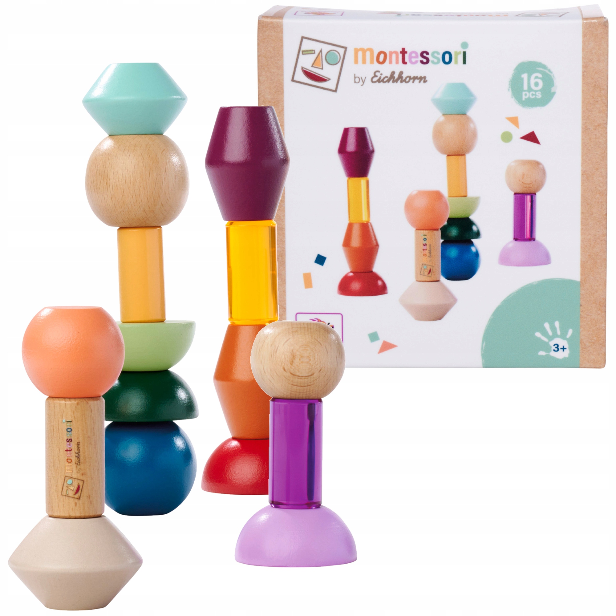 MONTESSORI ДЕРЕВ'ЯНА ВЕЖА З ФОРМ ГОЛОВОЛОМКИ 16 РІЗНОКОЛЬОРОВИХ ЕЛЕМЕНТІВ