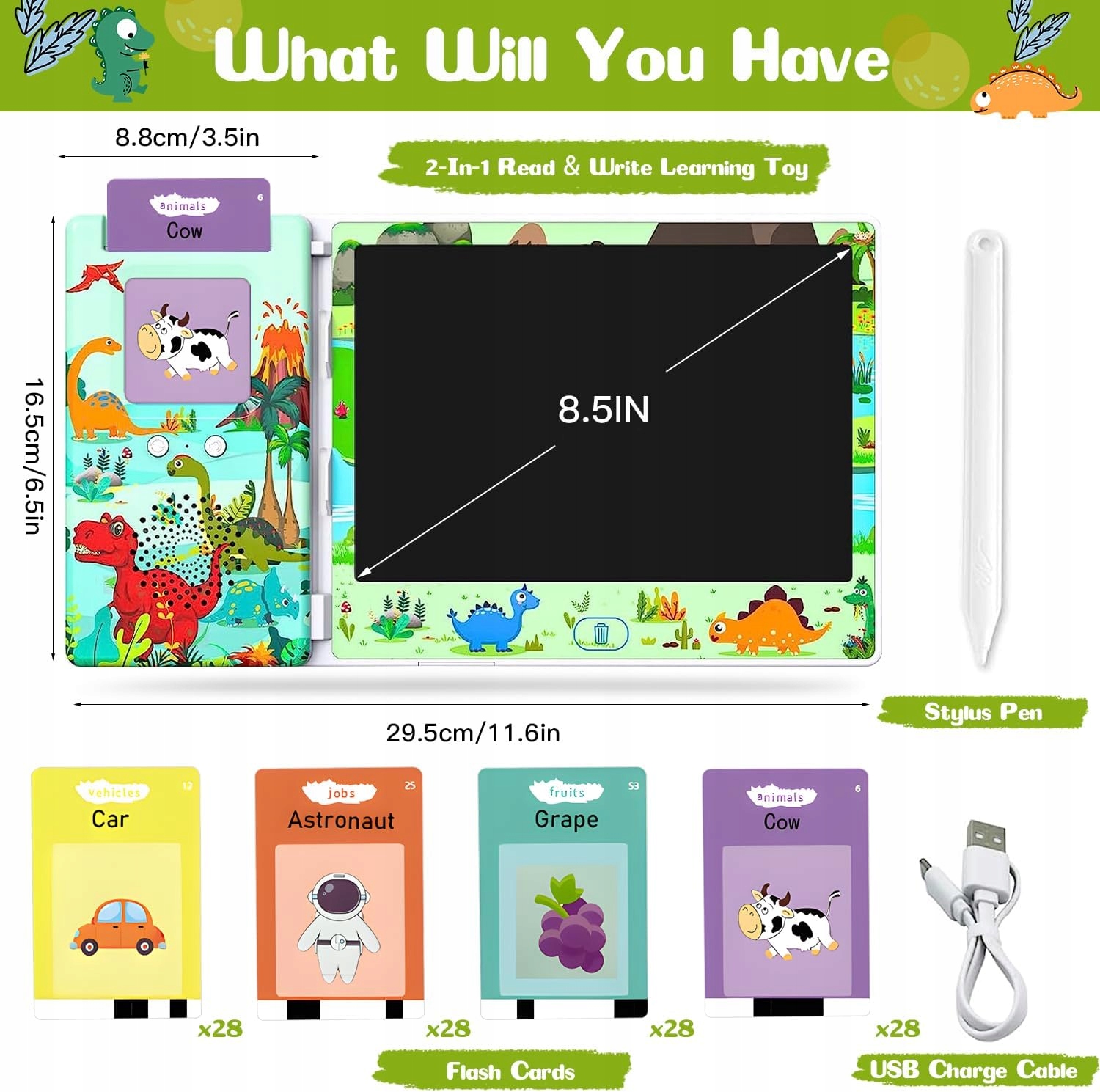 Розвивайте мовні навички та творчі здібності вашої дитини! Цей інтерактивний набір 2 в 1 поєднує в собі пристрій для читання англійських навчальних карток і РК-дошку для письма та малювання. Це ідеальний помічник у навчанні читання, письма, орфографії та логопедії.