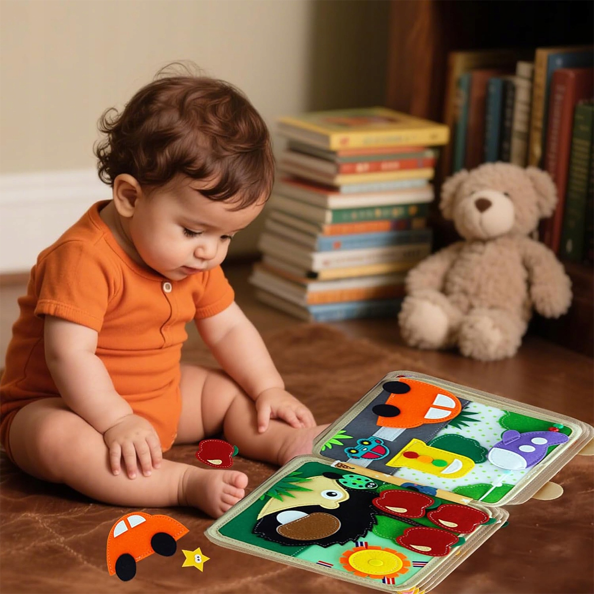Виготовлена з фетру, вона гладка й без задирок, нетоксична та не має запаху, приємна на дотик, неінвазивна, не тисне та міцна. Тиха книжка YOUKUKE відповідає європейським стандартам безпеки CE для іграшок.