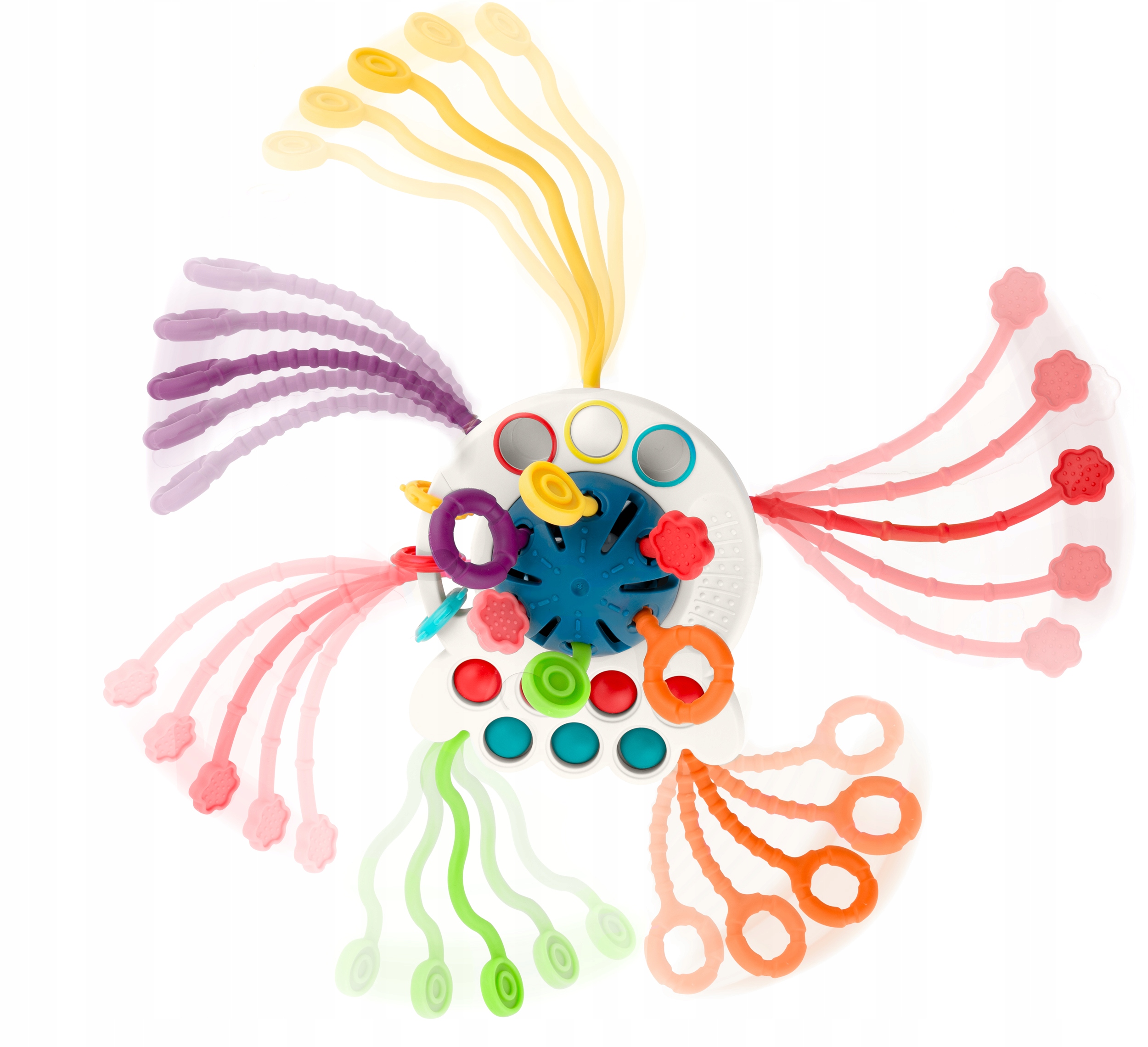Іграшка має силікону крапки для стискання, розсувних елементів, і кожен елемент барвистий. Ця іграшка, безумовно, буде зацікавлена у вашій дитині . Ручки розроблені таким чином, щоб дитина могла схопити іграшку зручно та інтуїтивно.