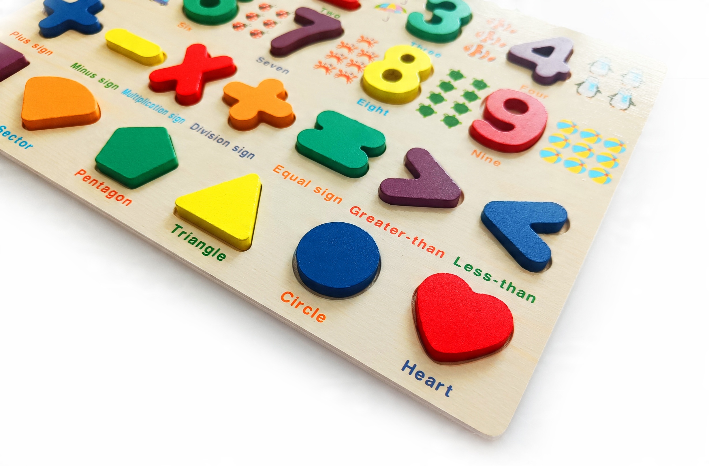 ДЕРЕВ'ЯНИЙ НАВЧАЛЬНИЙ НАБІР HAPPY KIDDO MONTESSORI: головоломка Монтессорі на сенсорну логіку та спритність, дерев'яний сортер + дошка з цифрами для вивчення англійської мови