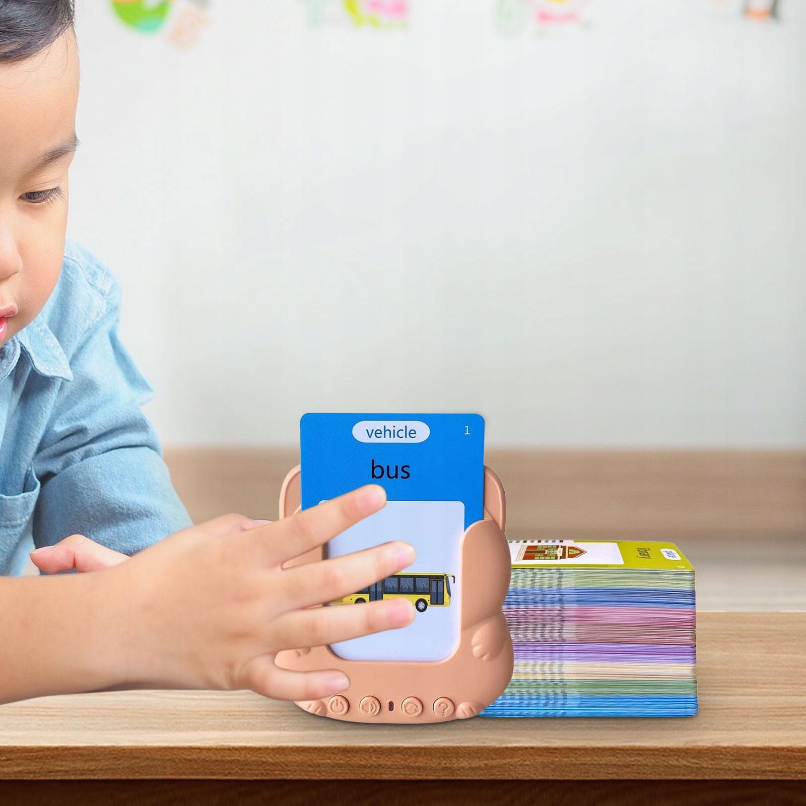 [Вміст пакета]: кожен пакет включає 1 пристрій для флеш-карт, двосторонні картки з широким набором навчальних матеріалів і кабель для заряджання пристрою.