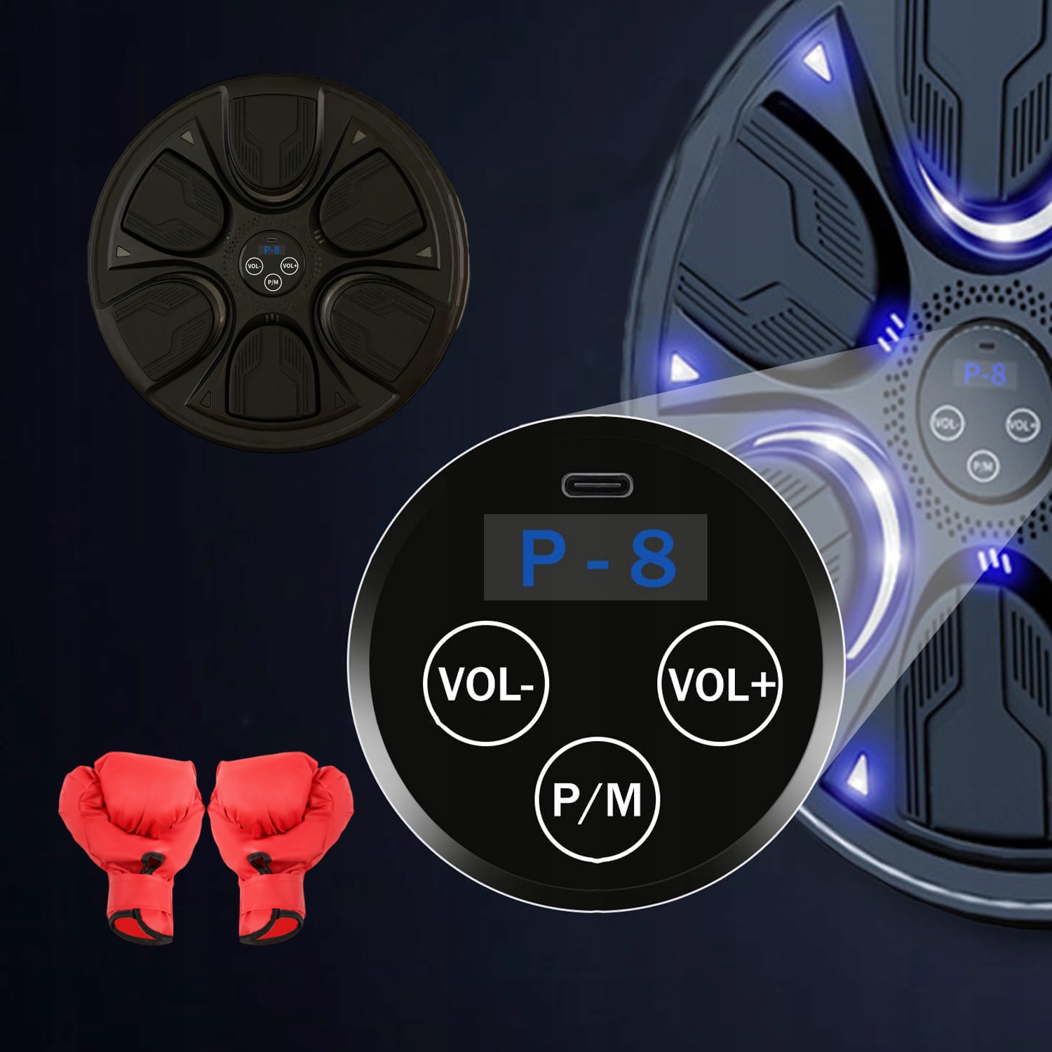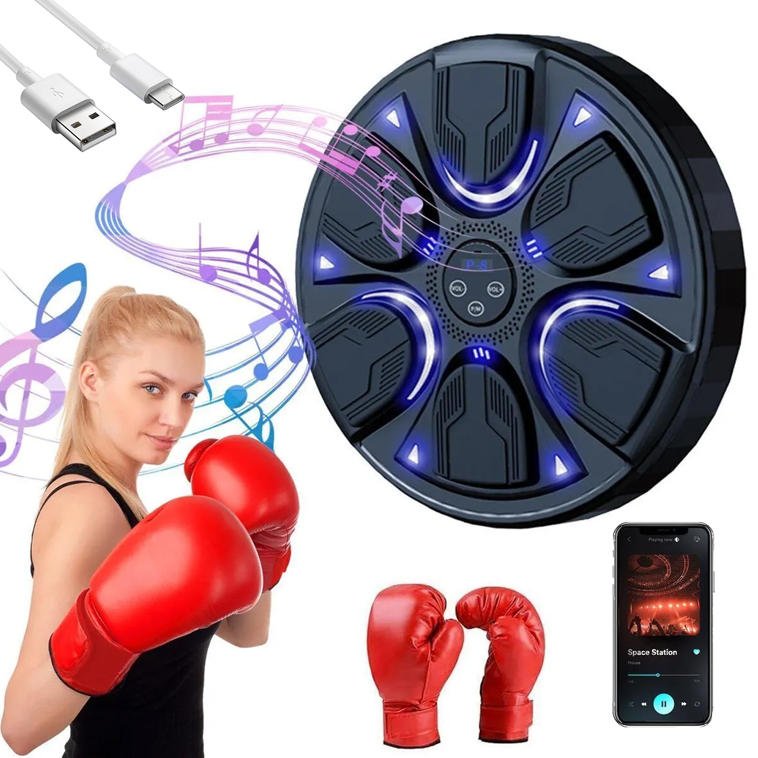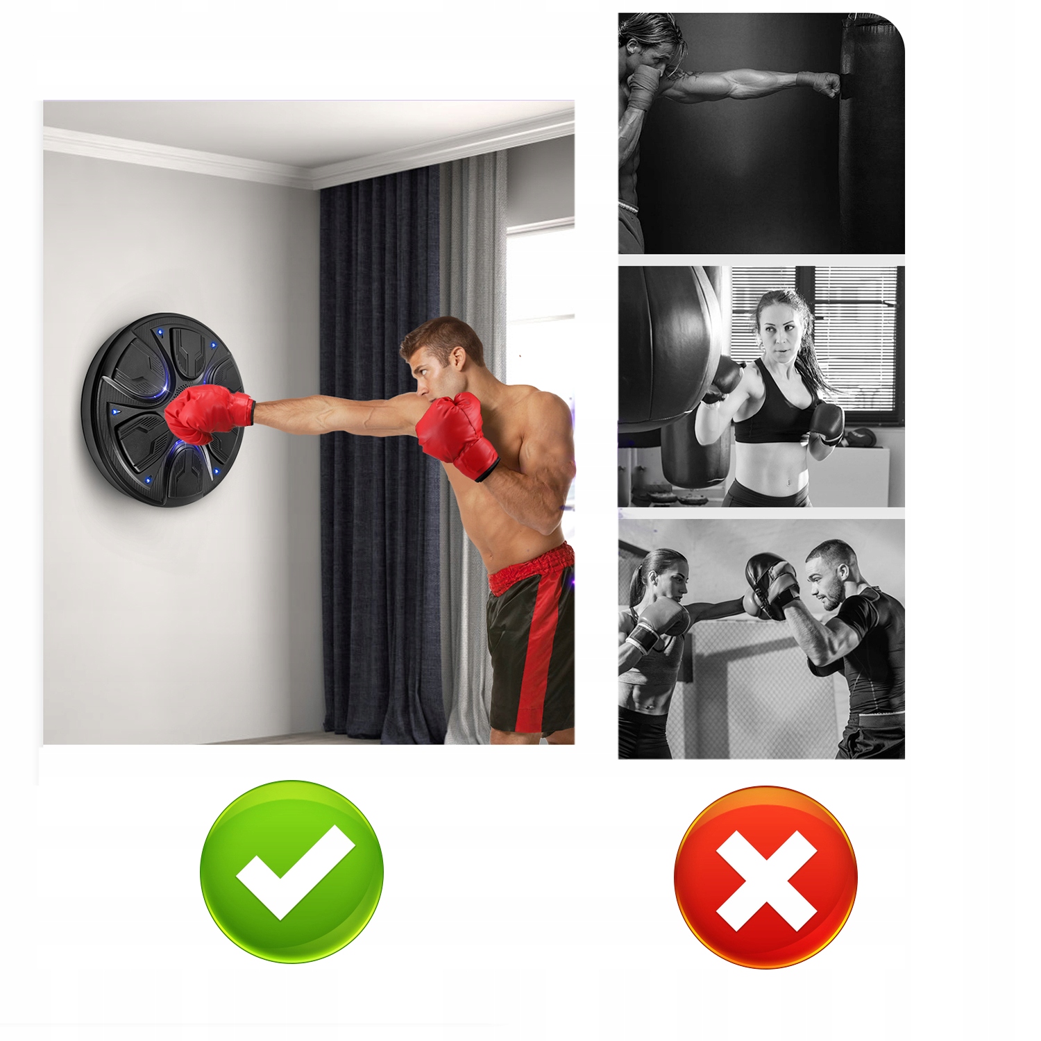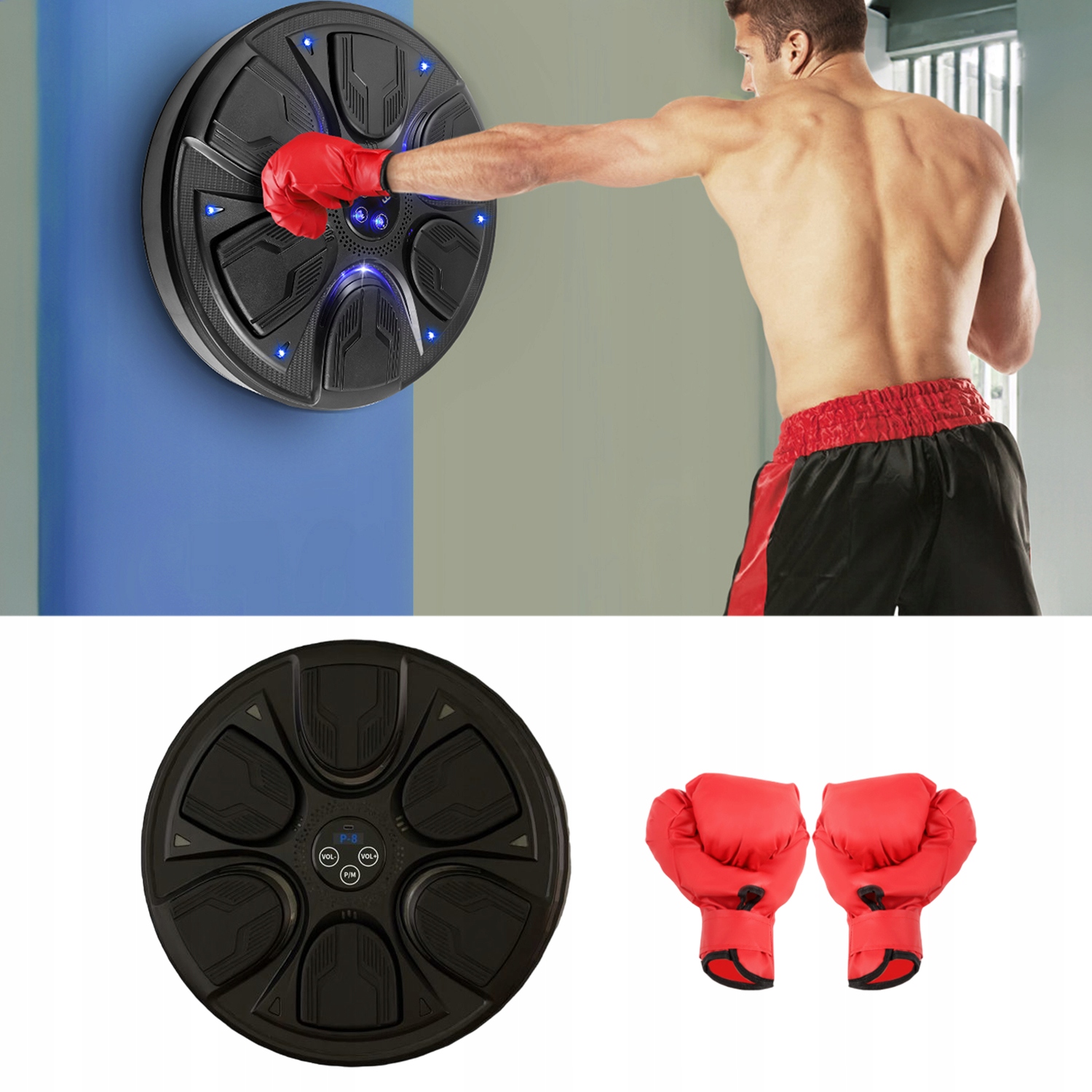 MONTOWANA NA ŚCIANIE MASZYNA BOKSERSKA Z MUZYKĄ BLUETOOTH RĘKAWICZKAMI