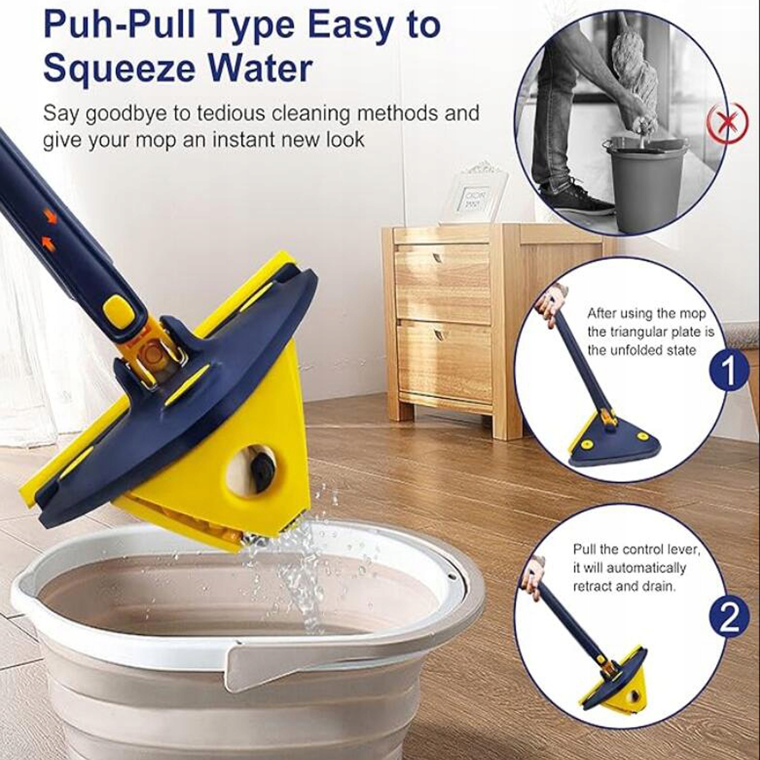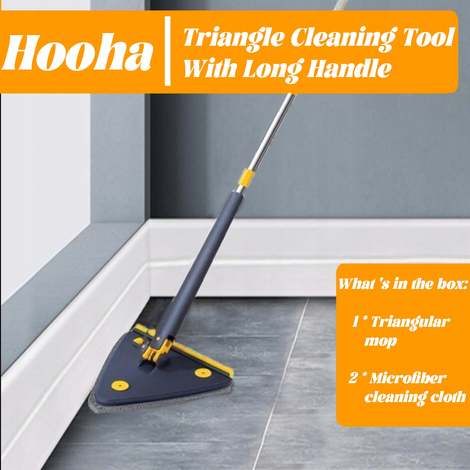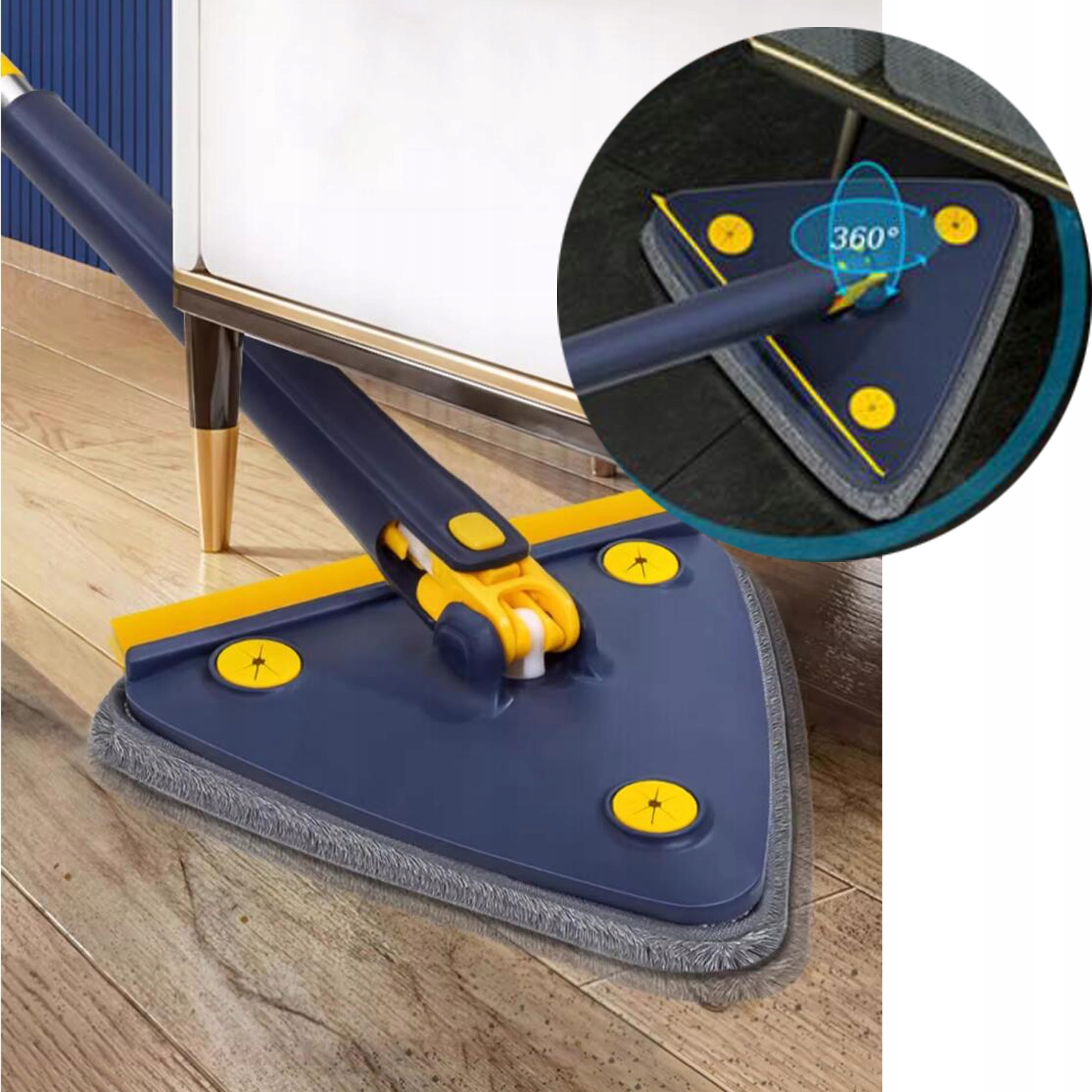 Трикутна швабра може обертати 360 °, щоб очистити підлоги в усіх напрямках, легко досягаючи твердих місць, не залишаючи мертвих кутів.