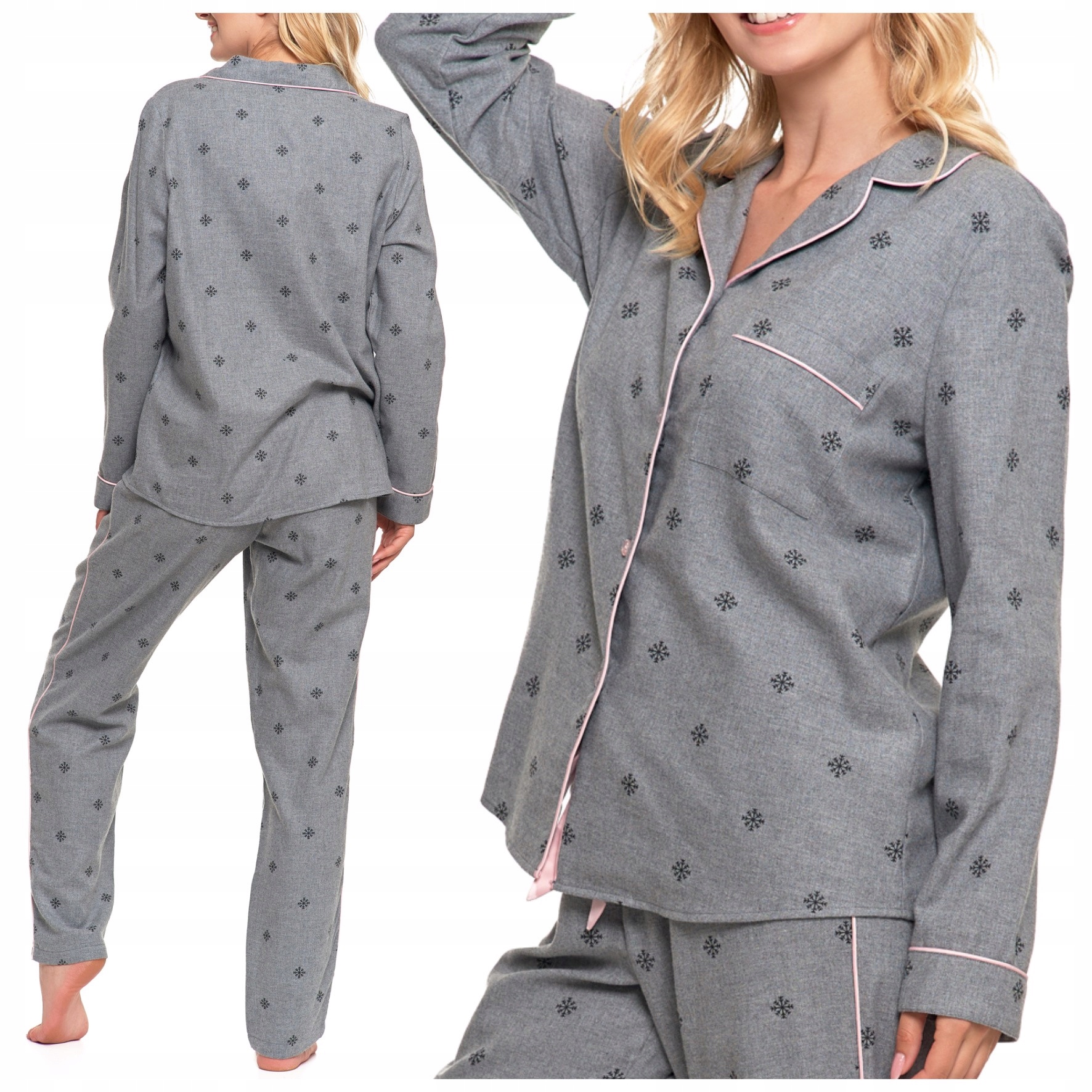 ЖІНОЧА БАВОВНОВА ПІЖАМА MORAJ З ДОВГИМ РУКАВОМ СНІЖИНКИ ТЕПЛА ЗИМА СІРА M