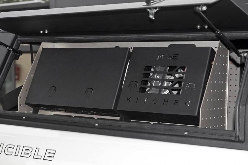 - Похилий стіл, призначений для жорстких дахів More 4x4, виготовлено зі сталі 2 мм і покрито чорною порошковою фарбою.