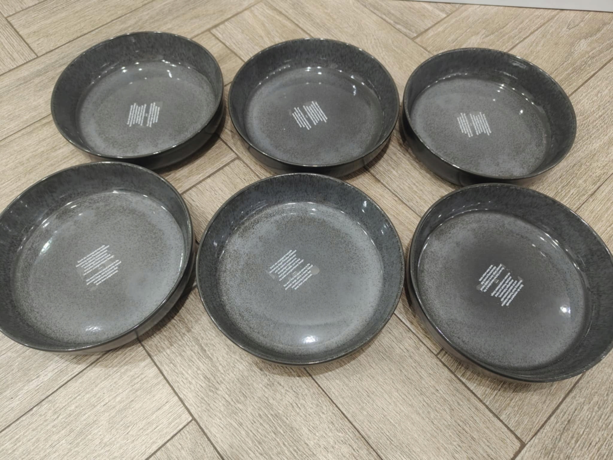- Повний набір наборів-18-частин, що складається з 6 27 х 2 см для обідніх пластин, 6 десертних пластин 20 х 2 см та 6 супних пластин 19 х 4,5 см
