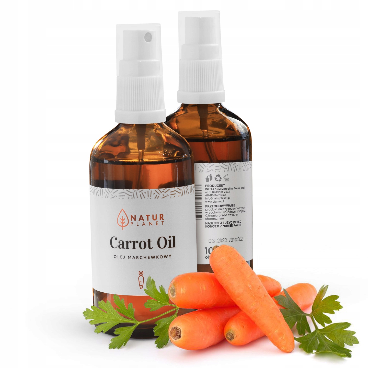 Отримано в процесі тривалої мацерації кореня моркви (Daucuss Carota). Морквяна олія характеризується високим вмістом β-каротину, токоферолів, вітамінів групи В, вітамінів А, С, Е, ненасичених жирних кислот, мікро- і макроелементів. Для всіх типів шкіри. Морквяна олія використовується в косметиці головним чином завдяки високому вмісту каротину, який має антивікові властивості та сильні зволожуючі властивості. Нормалізує товщину і структуру рогового шару (stratum corneum), посилюючи його захисну функцію. Крім того, він покращує стан сполучної тканини. Систематичне використання морквяної олії прискорює регенерацію шкіри на 30% і значно зміцнює дерму.