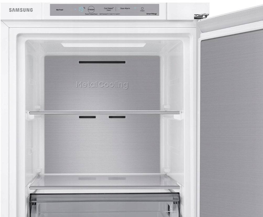 Повна технологія No Frost від Samsung забезпечує постійну циркуляцію прохолодного повітря, систематично видаляючи зайву вологу зсередини холодильника. Завдяки цьому на стінках або продуктах не накопичується лід і іній. Їжа довше залишається свіжою та поживною, а чистити її легше без розморожування.