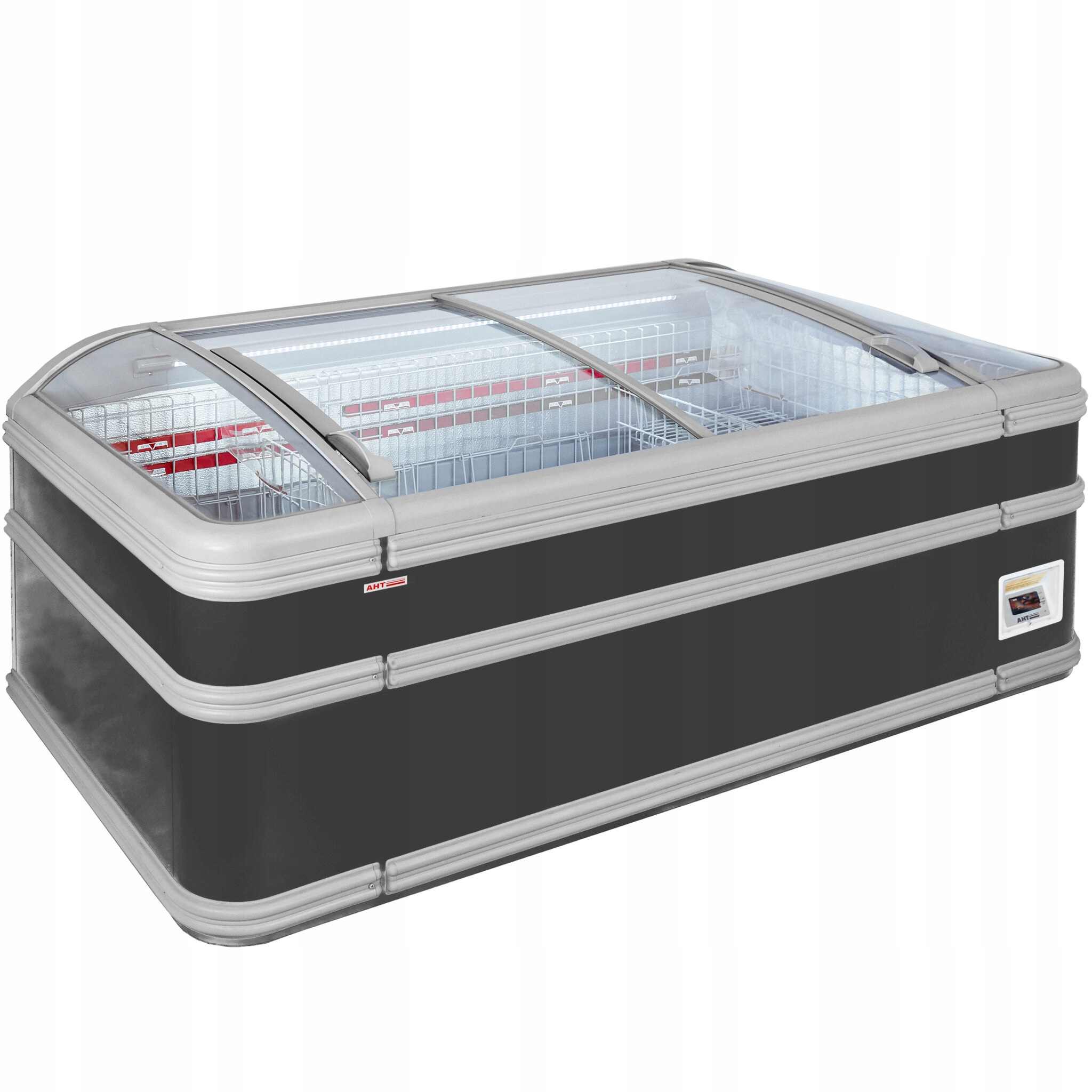 Сучасна скляна морозильна камера AHT Miami 185 - професійний морозильний апарат, призначений для магазинів, ресторанів і закладів громадського харчування. Ємність 927 літрів, розсувні скляні вікна та ефективна система охолодження забезпечують ідеальні умови для демонстрації та зберігання заморожених продуктів.