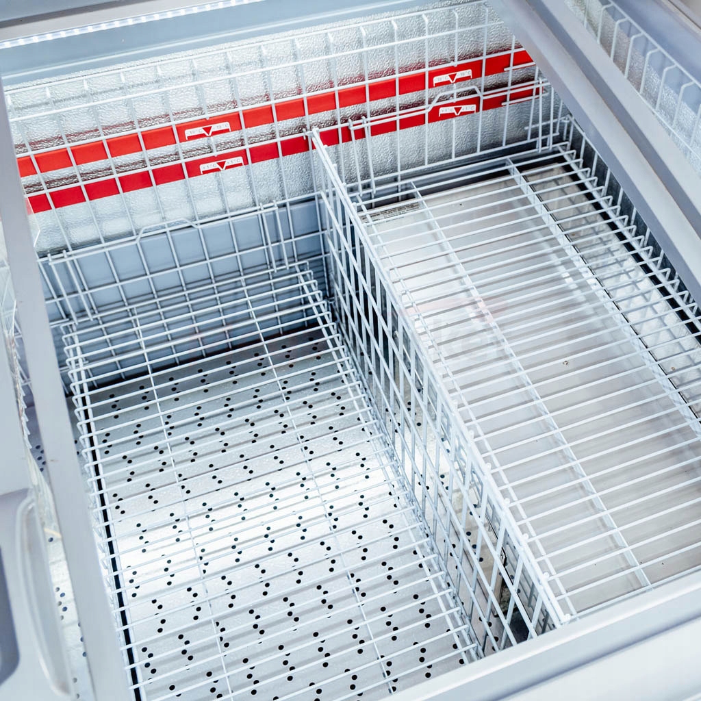 Ідеально підходить для зберігання та демонстрації м’яса, риби, морепродуктів, морозива, овочів, фруктів і готових заморожених продуктів.