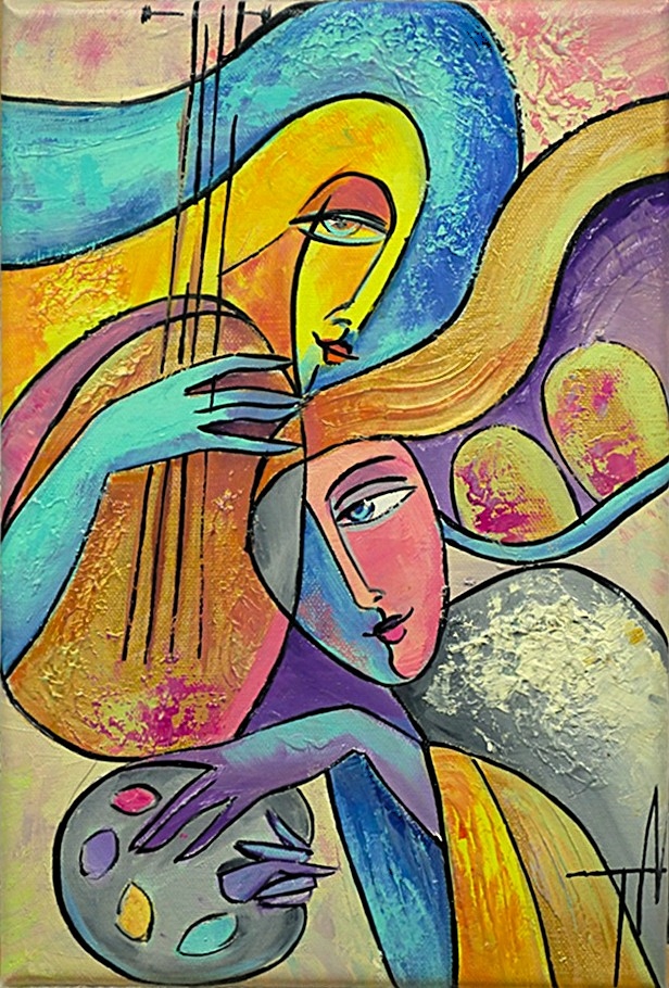 Картина олією, покрита лаком, написана на полотні та натягнута на раму підрамника