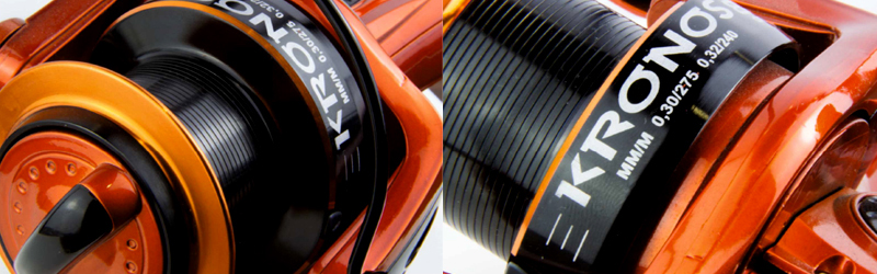 Потужна, дуже міцна котушка, призначена для лову великої риби, особливо рекомендована для любителів морської риболовлі. Рекомендується скрізь, де ми плануємо зловити велику рибу вагою понад 10 кг. Його можна успішно використовувати для лову великої тріски, сома і там, де очікується велика риба... Добре збалансований, зручний, невелика вага, оснащений регулюванням опору у верхній частині корпусу, основна дюралюмінієва шпуля. Дуже точне гальмо, яке можна регулювати в широкому діапазоні гальмівної сили. Важливою перевагою цієї моделі є міцний редуктор, якісні шарикопідшипники, точно підігнаний багатоопорний механізм, шестерня з нержавіючої сталі та дюралюмінієвий шатун. Оснащений сімома шарикопідшипниками та одним упорним підшипником. Котушки серії Kronos Curf Casting пропонуються в комплекті з графітовою запасною шпулею.