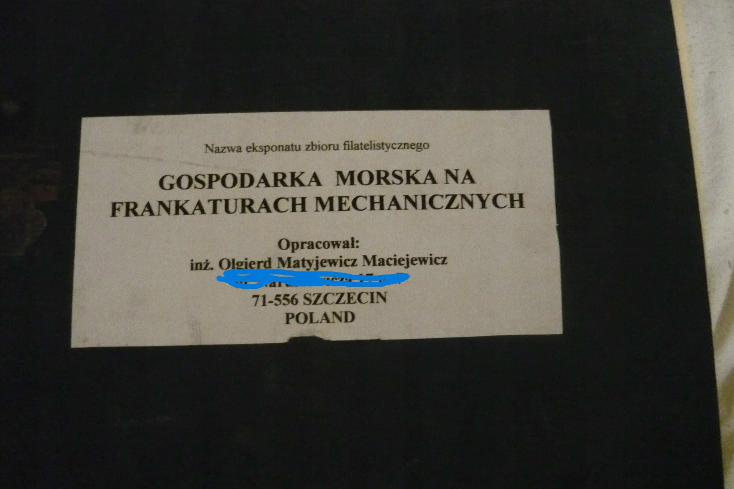 На фото №. 5 — перелік колекції, а на останньому фото — наліпка на обкладинці із зображенням автора колекції, дуже відомого філателіста, творця каталогу Івана Павла ІІ на епізодичних датувальниках світу і, до речі, сина одного з найвідоміших капітанів пароплавства — «капітанів» Костянтина Мацеєвича, останнього коменданта «Львова» і першого коменданта с. «Дар Поморжа». Викладачі морських шкіл у Тчеві, Ґдині та Щецині.